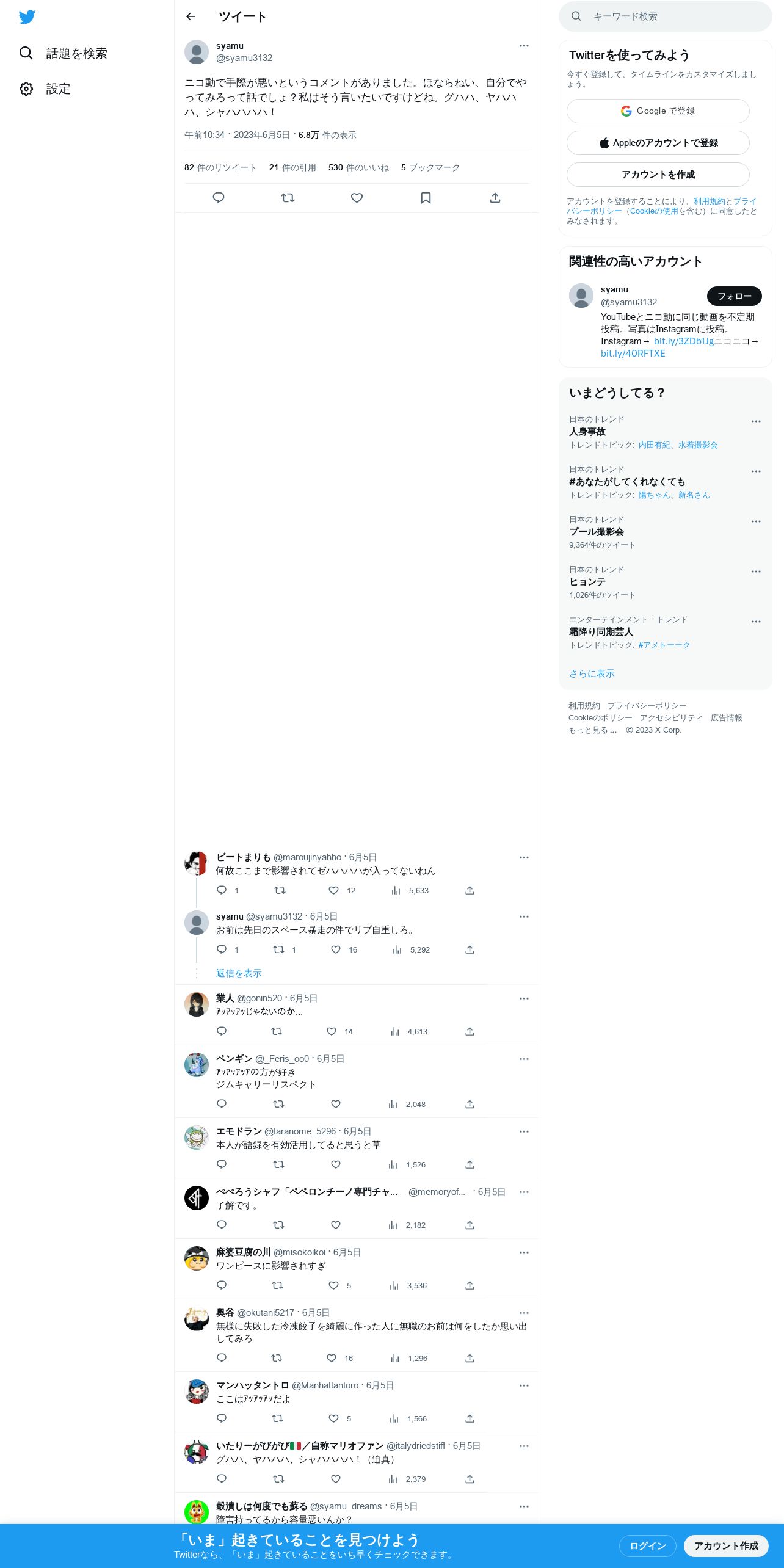 取得元URL: https://twitter.com:443/syamu3132/status/1665668283536666625