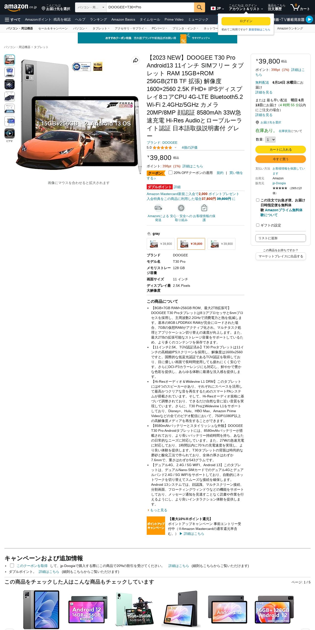 https://www.amazon.co.jp:443/NEW%E3%80%91DOOGEE-%E8%A7%A3%E5%83%8F%E5%BA%A61600%C3%972560-90Hz%E3%81%AE%E3%83%AA%E3%83%95%E3%83%AC%E3%83%83%E3%82%B7%E3%83%A5%E3%83%AC%E3%83%BC%E3%83%88-Bluetooth5-2-Audio%E3%81%A8%E3%83%AD%E3%83%BC%E3%83%96%E3%83%AB%E3%83%BC%E3%83%A9%E3%82%A4%E3%83%88%E8%AA%8D%E8%A8%BC/dp/B0C6F4JQQC/ref=sr_1_3?__mk_ja_JP=%E3%82%AB%E3%82%BF%E3%82%AB%E3%83%8A&crid=1FTT1NFKDIADU&keywords=DOOGEE%2BT30%2BPro&qid=1686564112&s=computers&sprefix=doogee%2Bt30%2Bpro%2Ccomputers%2C364&sr=1-3&th=1