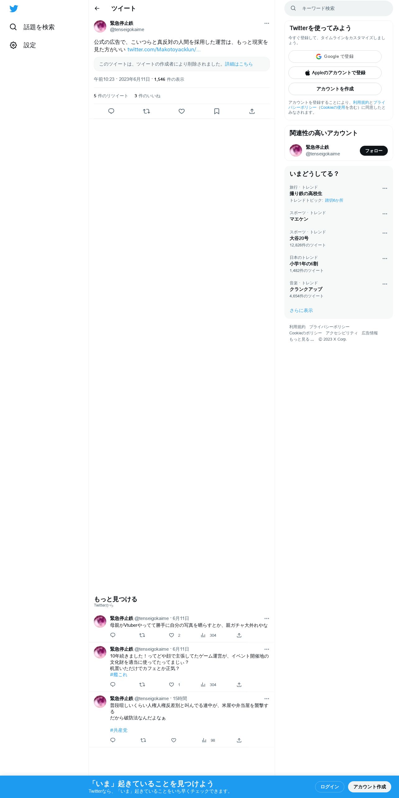 取得元URL: https://twitter.com:443/tenseigokaime/status/1667839967220105216