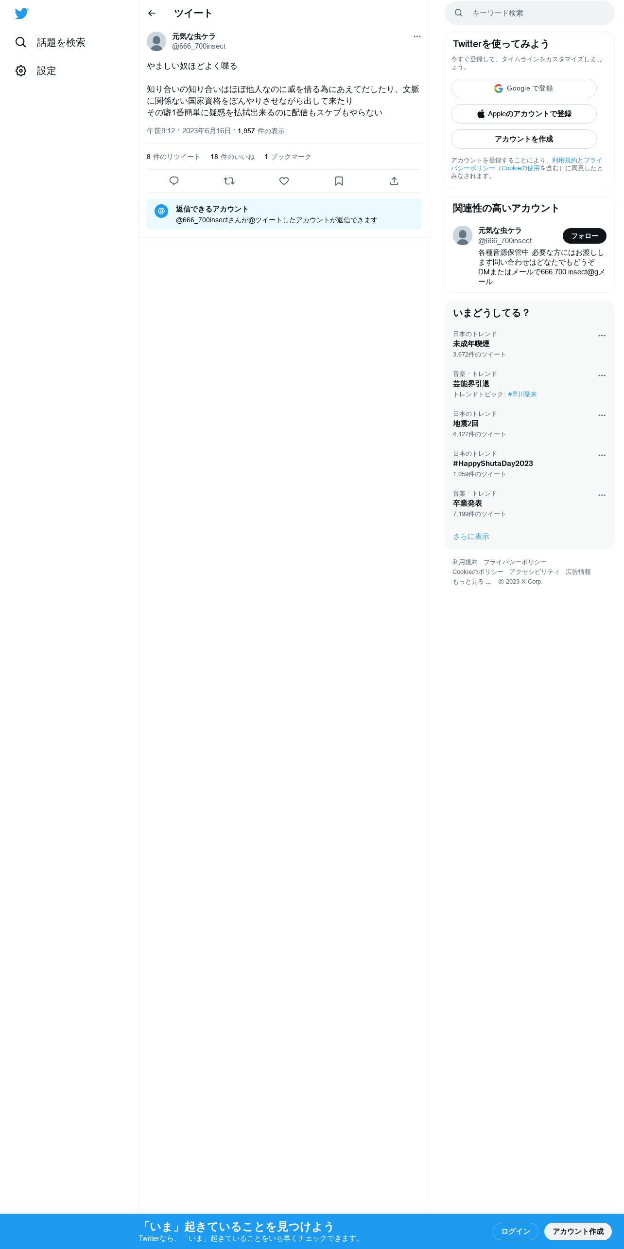 取得元URL: https://twitter.com:443/666_700insect/status/1669633964628410368