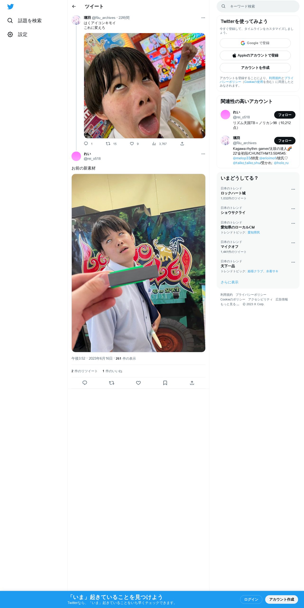 取得元URL: https://twitter.com:443/rei_o518/status/1669734741954949120