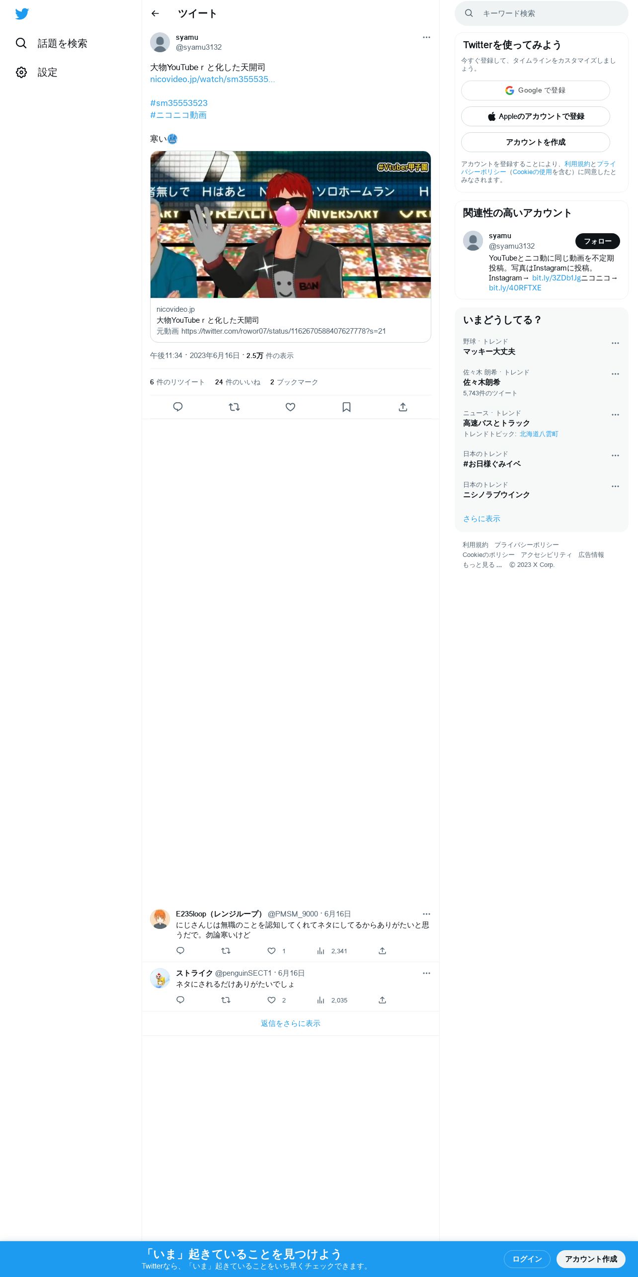 https://twitter.com:443/syamu3132/status/1669850901362913280
