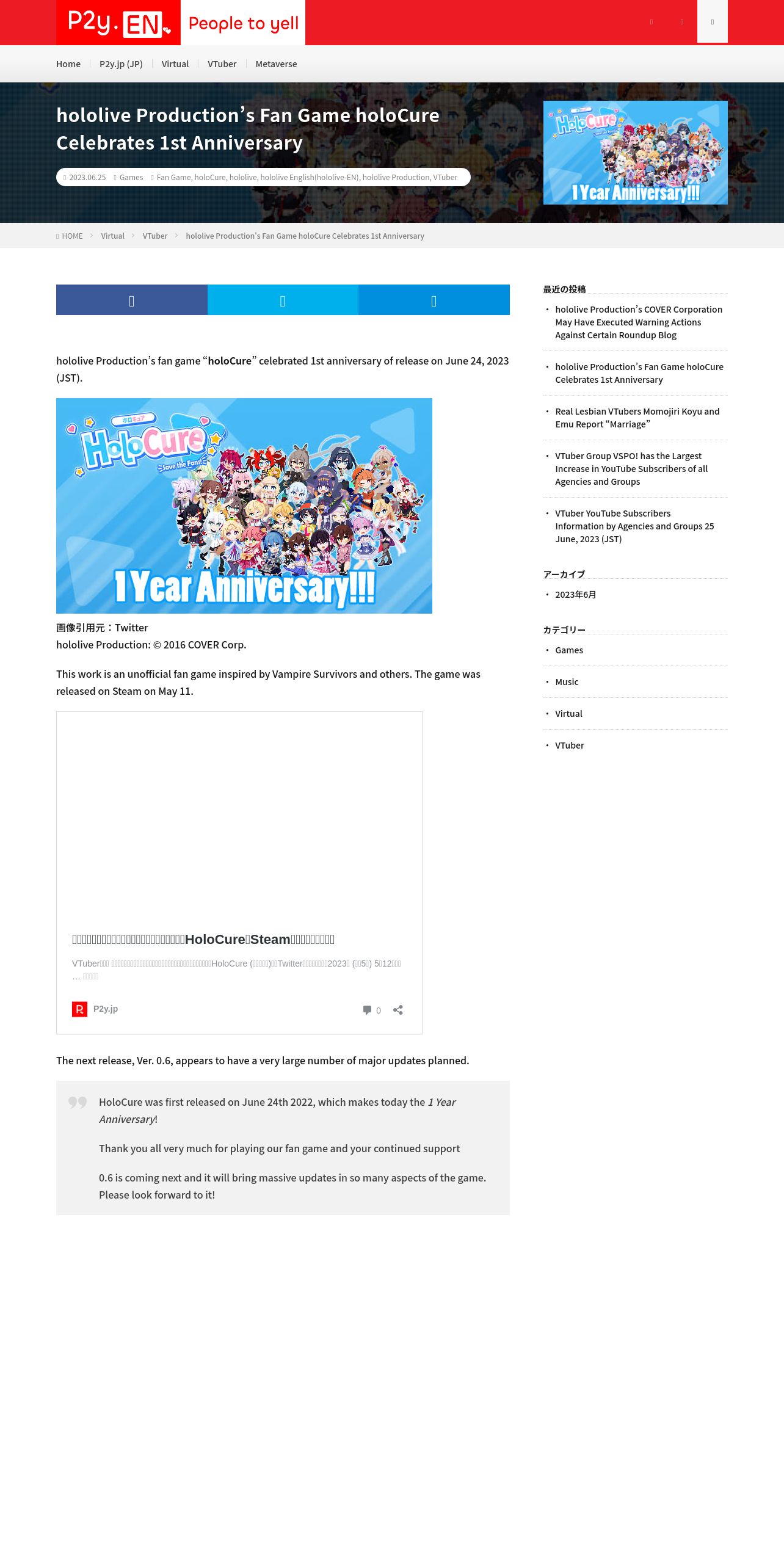 取得元URL: https://en.p2y.jp:443/hololive-production-fan-game-holocure-celebrates-1st-anniversary/