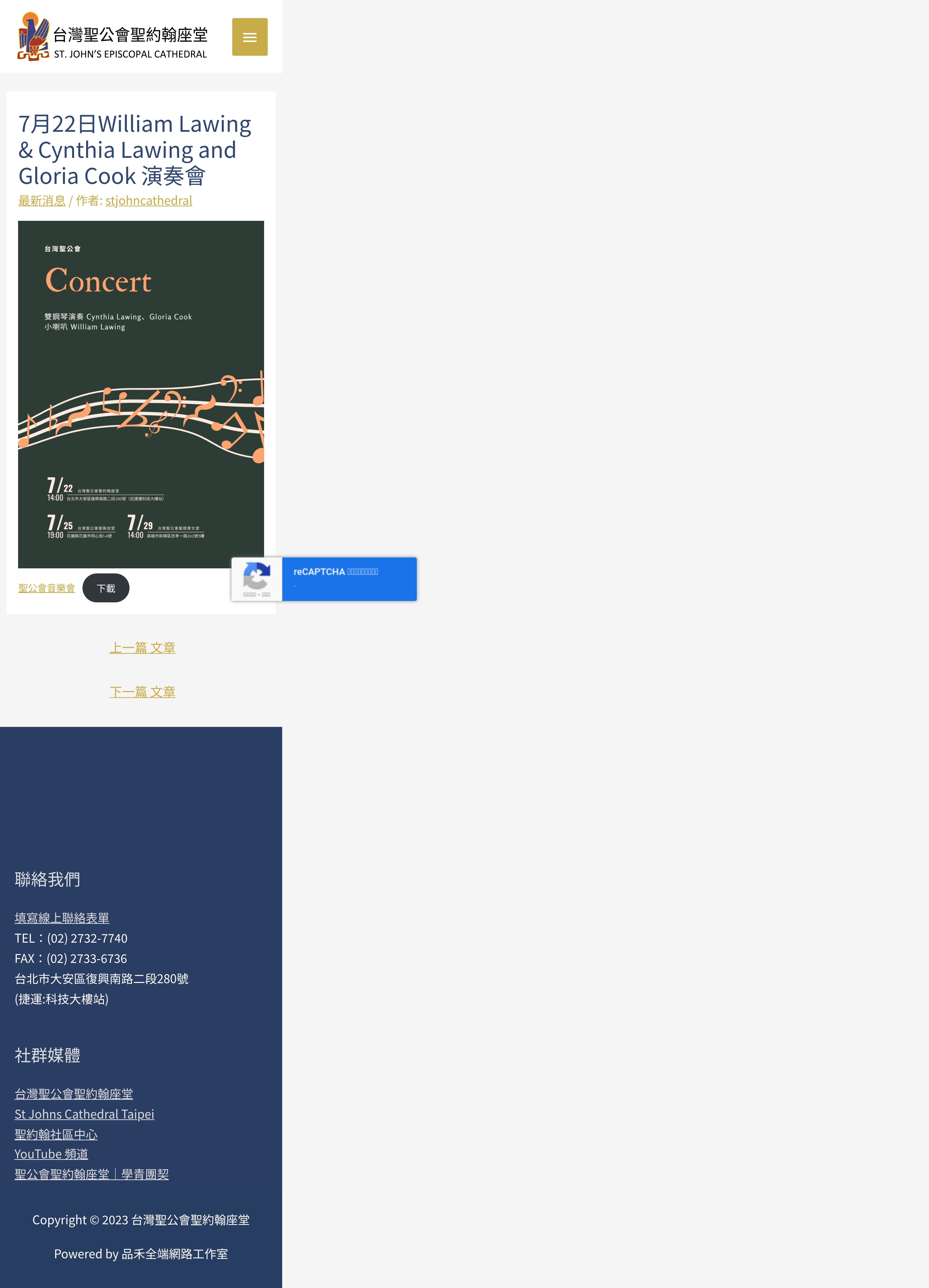 https://stjohn.episcopalchurch.org.tw:443/%e4%b8%83%e6%9c%8822%e6%97%a5william-lawing-cynthia-lawing-and-gloria-cook-%e6%bc%94%e5%a5%8f%e6%9c%83/