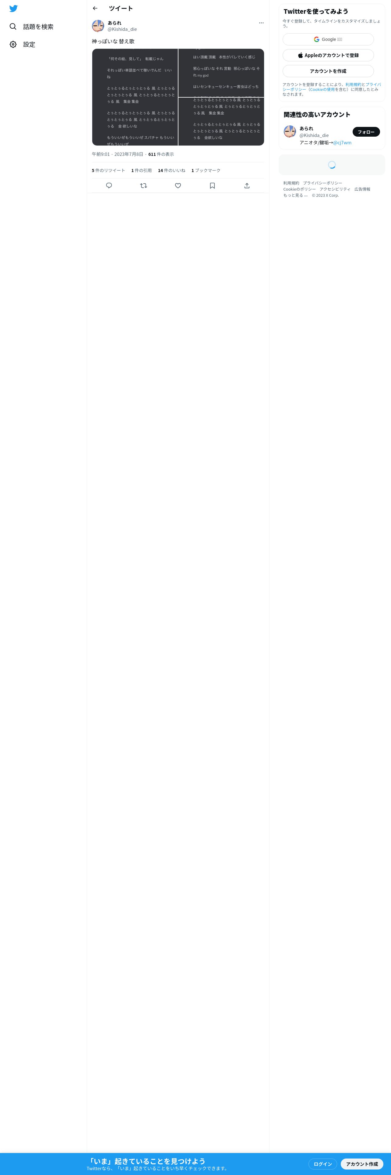 https://twitter.com:443/Kishida_die/status/1677603728512401408