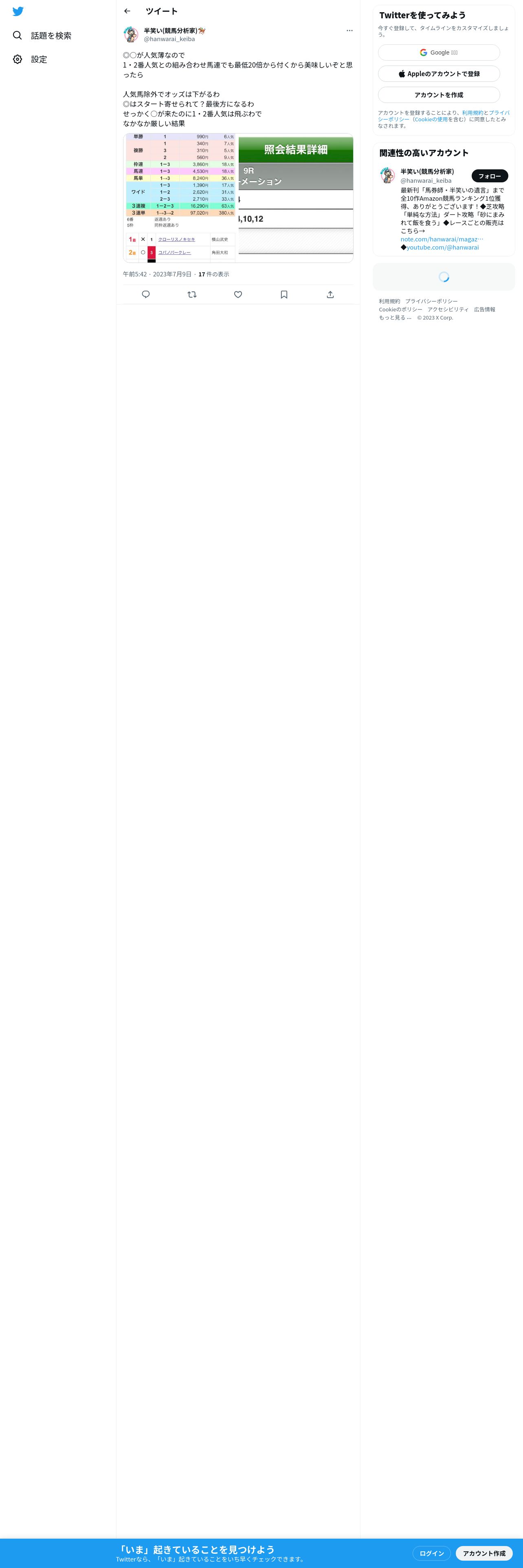 https://twitter.com:443/hanwarai_keiba/status/1677916148682162176