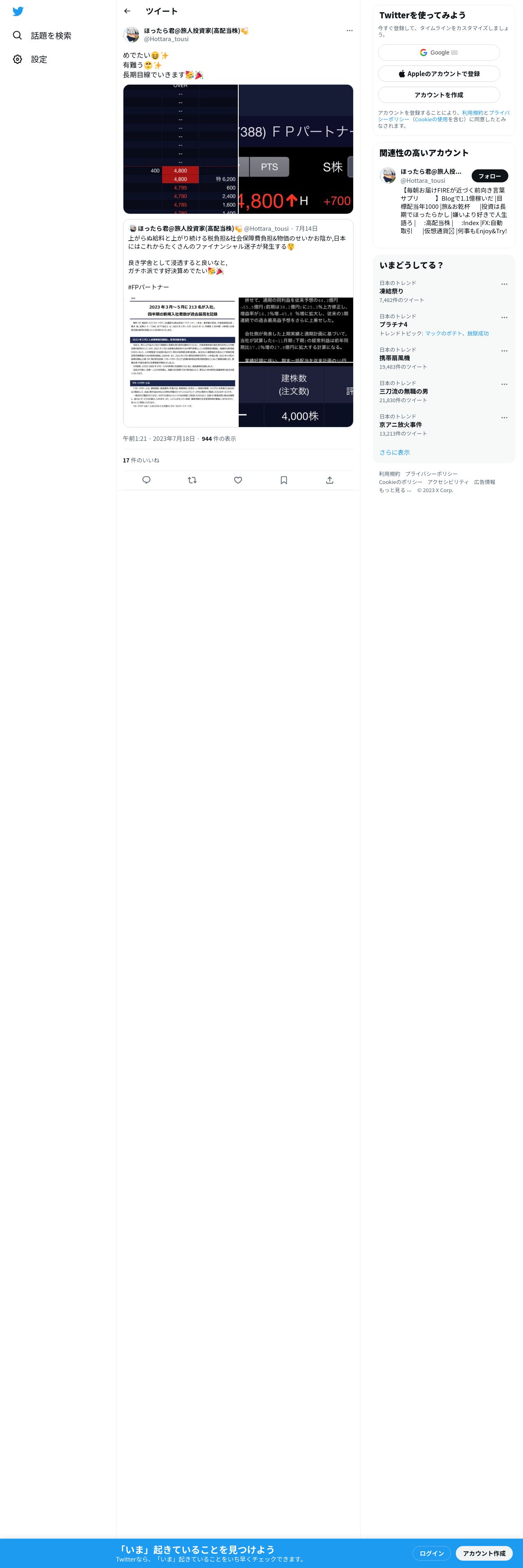 取得元URL: https://twitter.com:443/Hottara_tousi/status/1681111943896236032