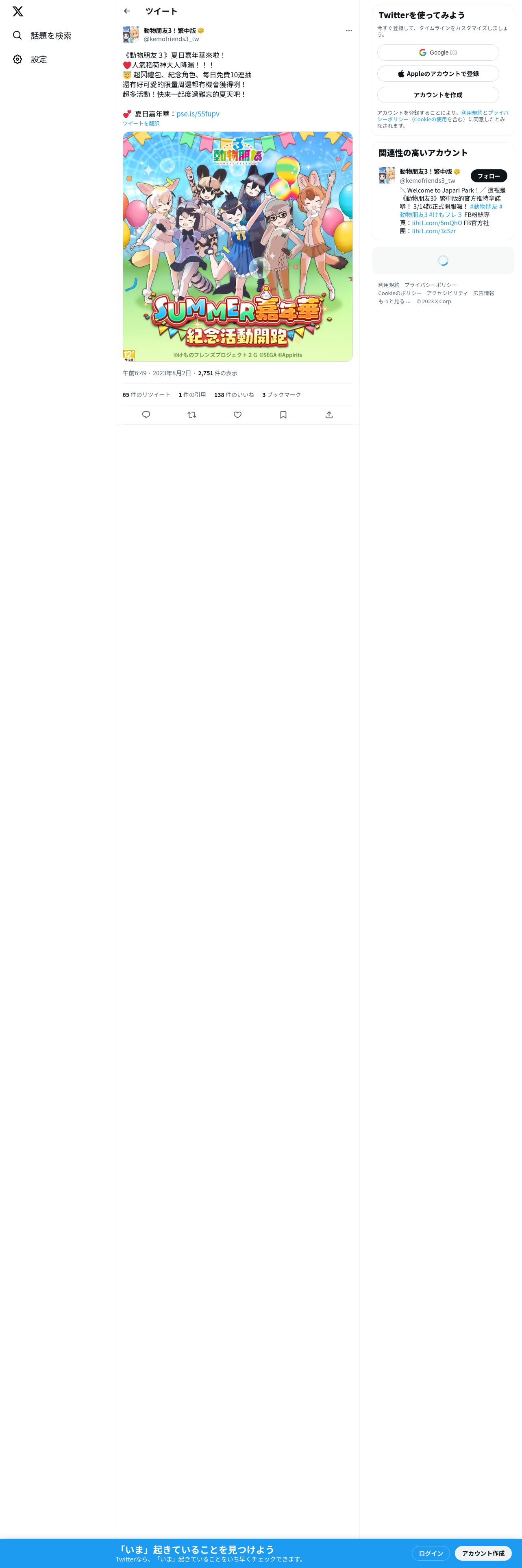 https://twitter.com:443/kemofriends3_tw/status/1686630310350655488