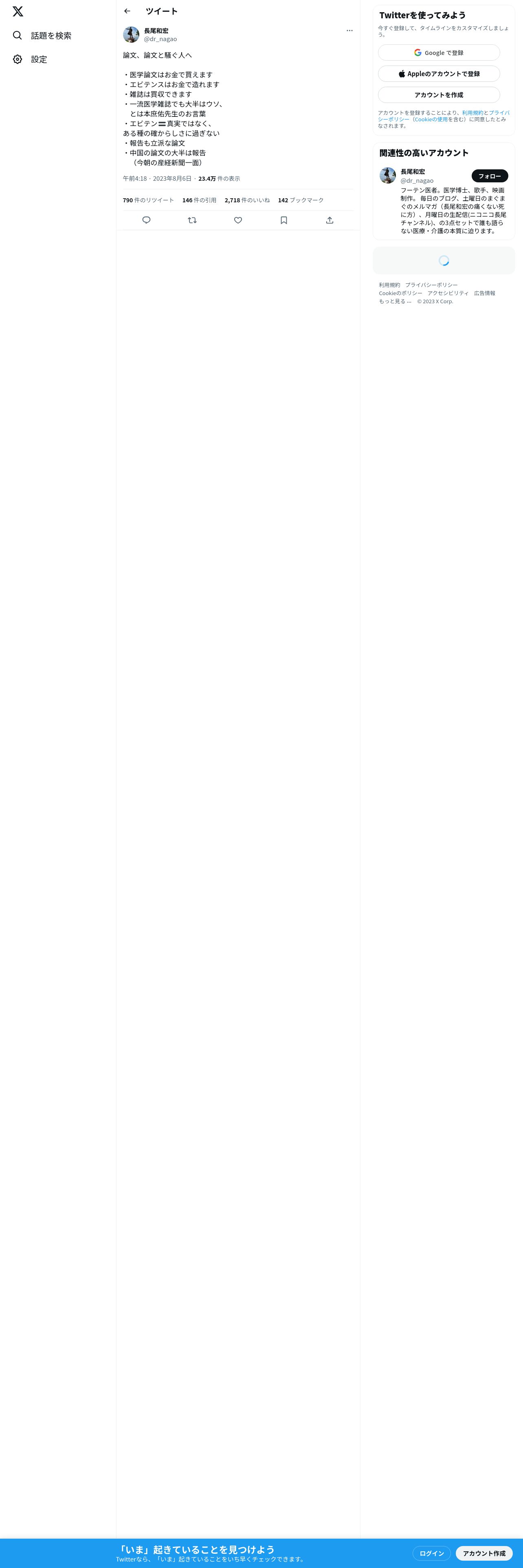 取得元URL: https://twitter.com:443/dr_nagao/status/1688041916817170432