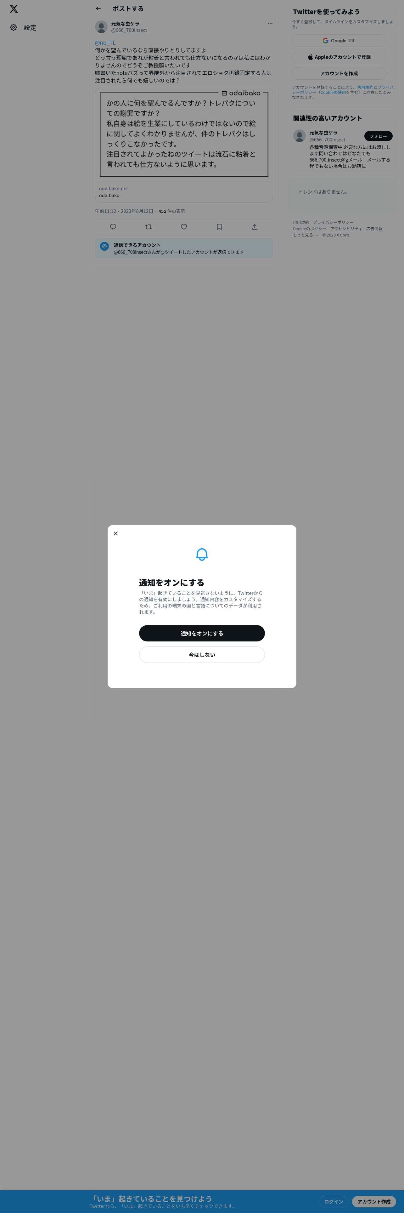 https://twitter.com:443/666_700insect/status/1690320309252235264