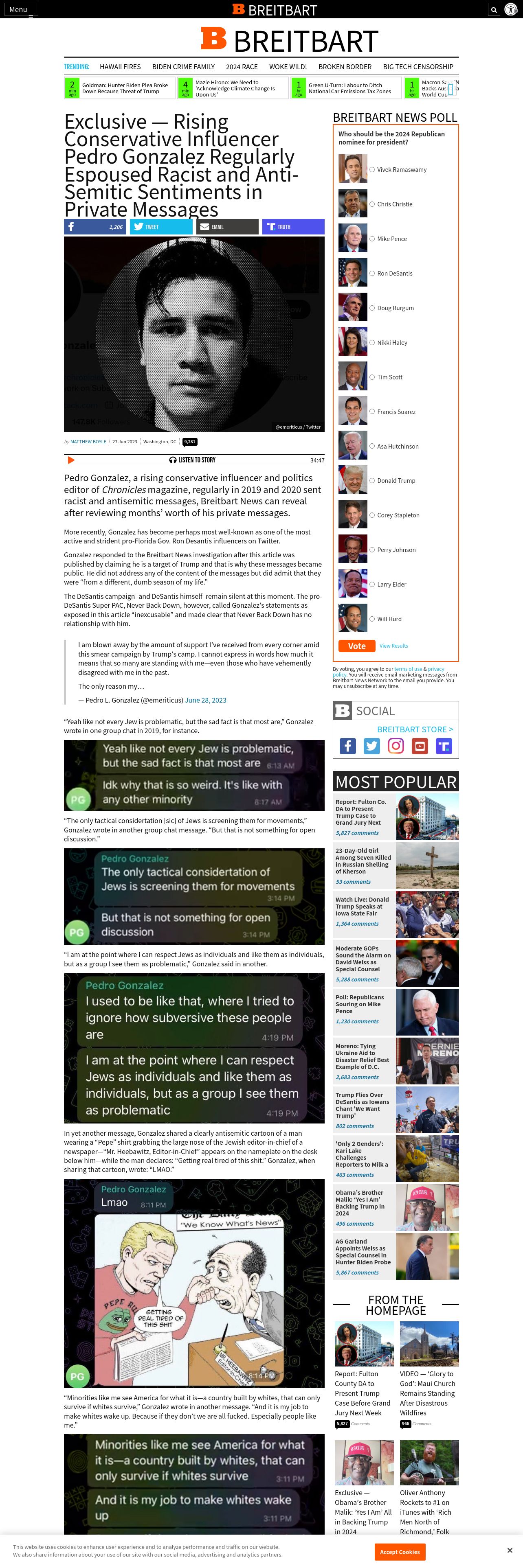 https://www.breitbart.com:443/politics/2023/06/27/exclusive-rising-conservative-influencer-pedro-gonzalez-regularly-espoused-racist-and-anti-semitic-sentiments-in-private-messages/