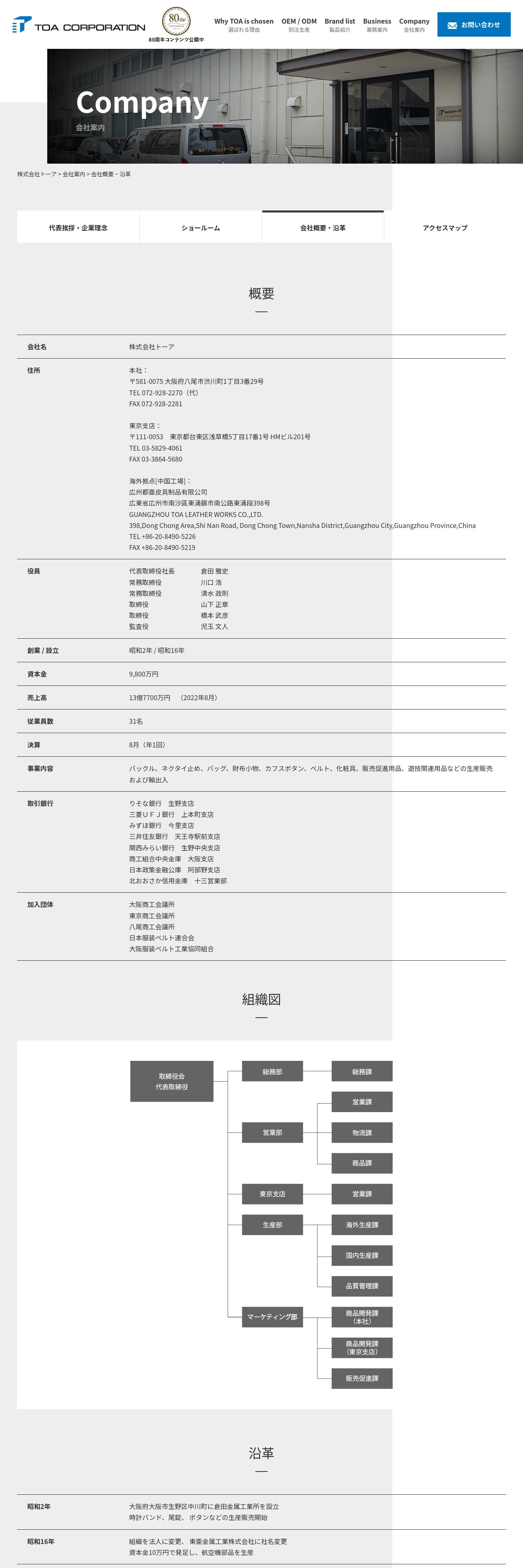 https://toa-osaka.co.jp:443/company/outline/