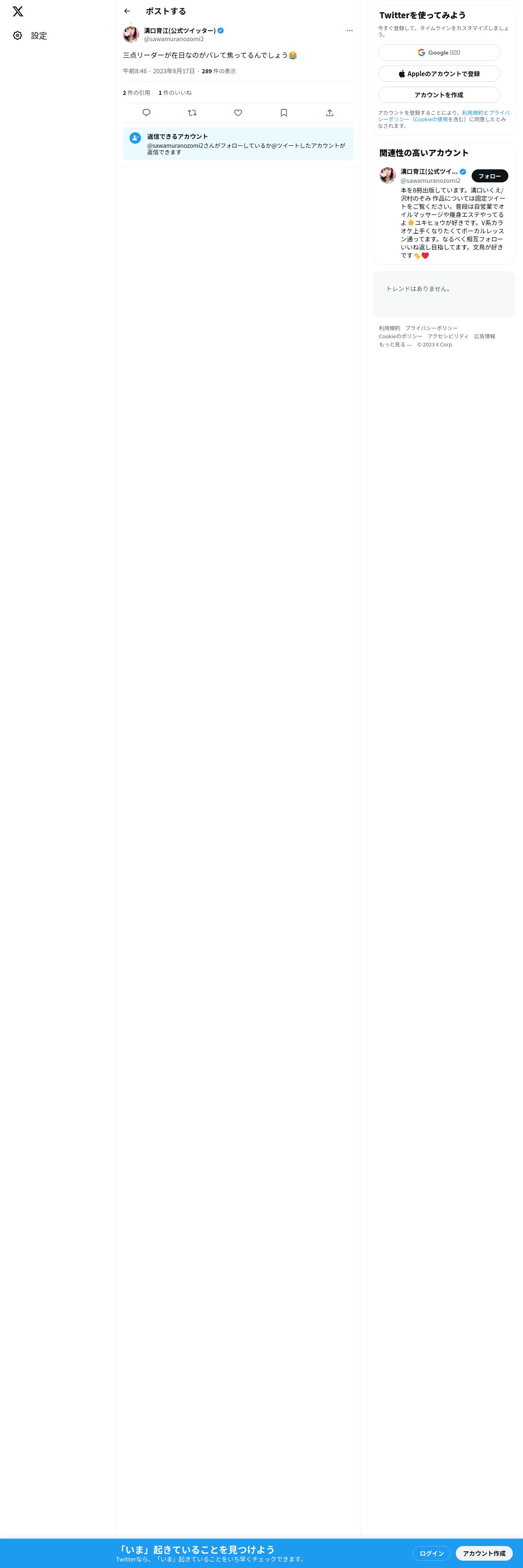 https://twitter.com:443/sawamuranozomi2/status/1692095486147317978
