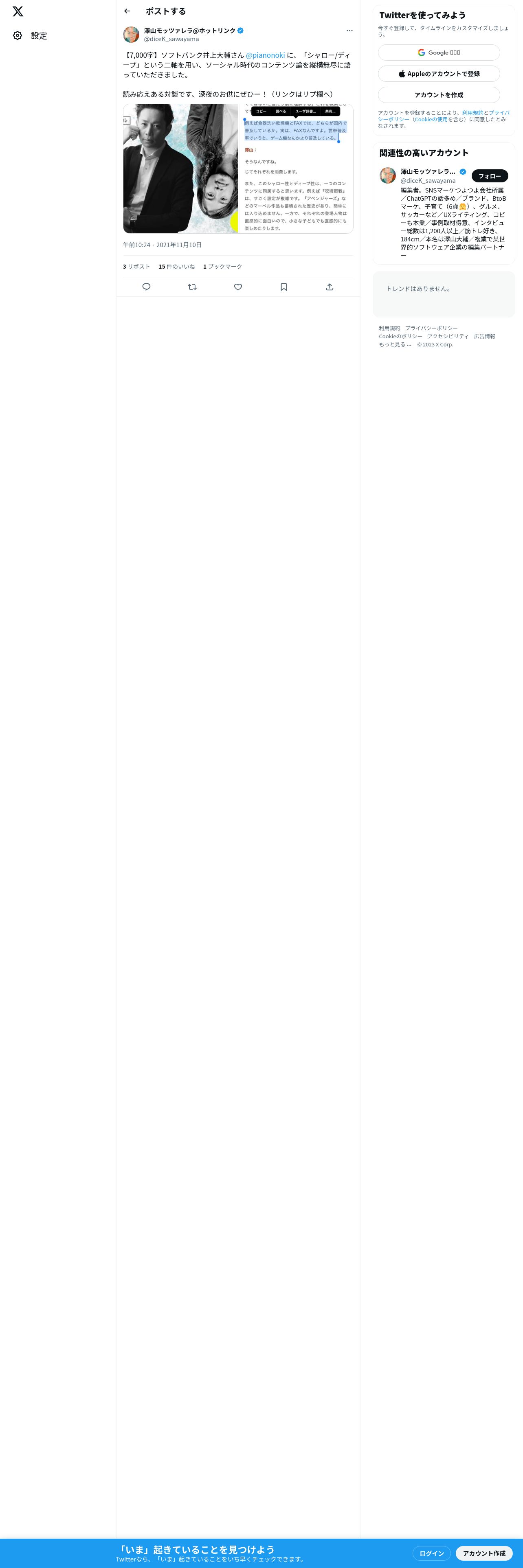 取得元URL: https://twitter.com:443/diceK_sawayama/status/1458380004480278532