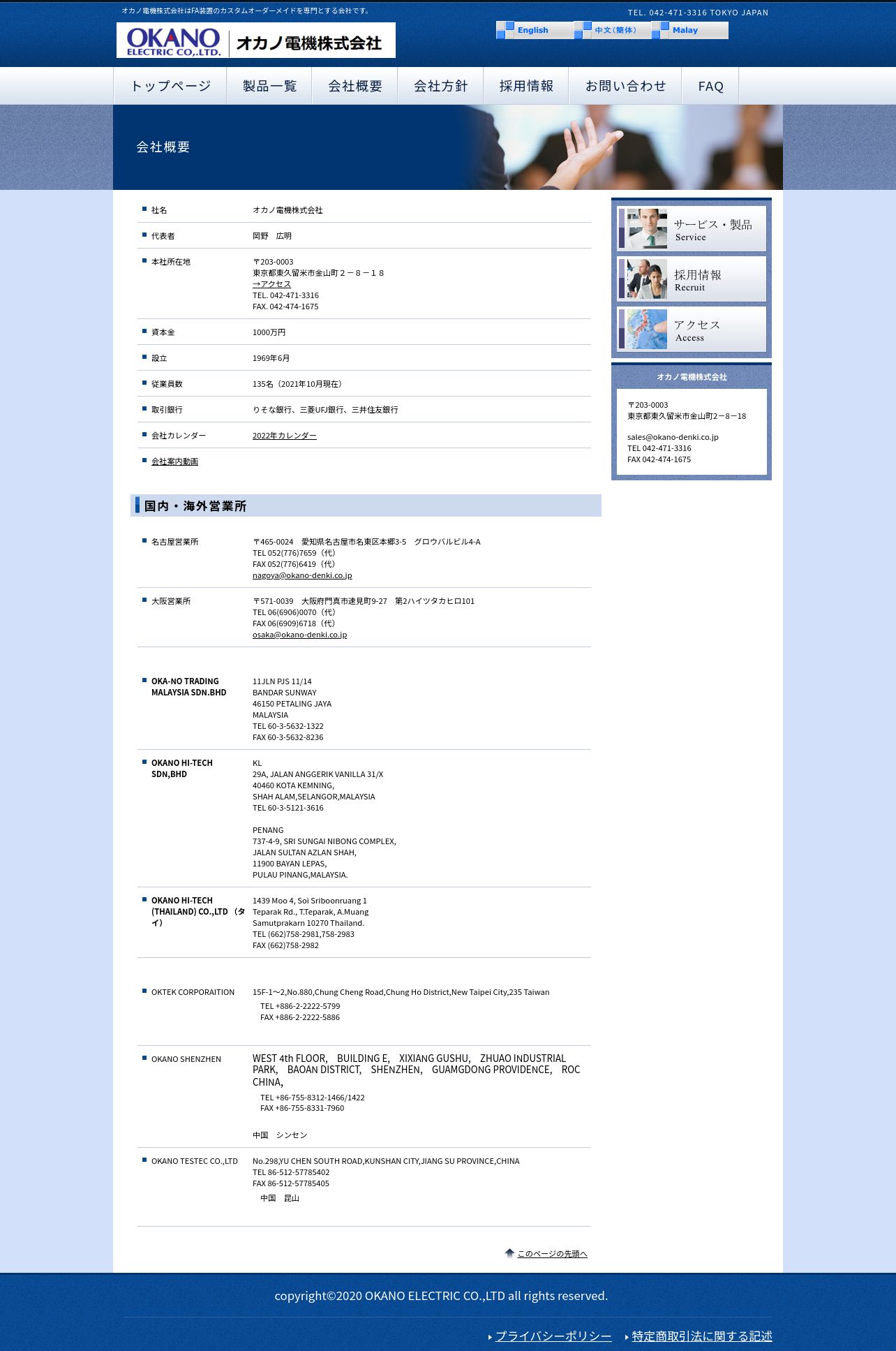 https://okano-denki.co.jp:443/company.html