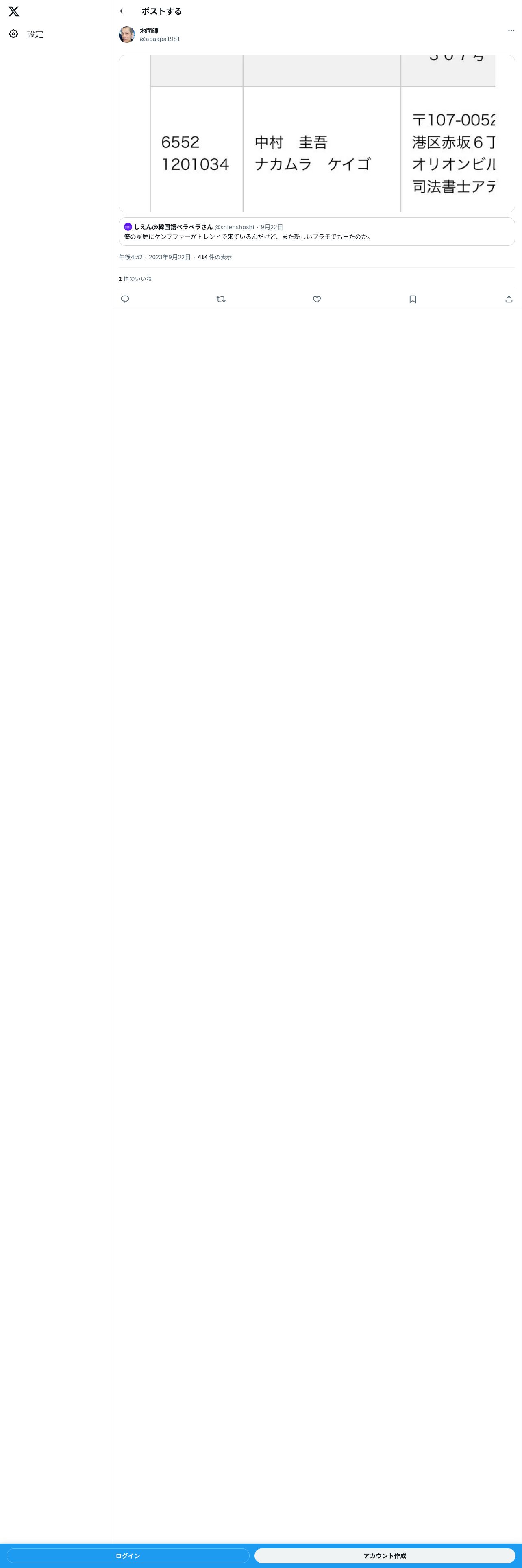 取得元URL: https://twitter.com:443/apaapa1981/status/1705263872515637379