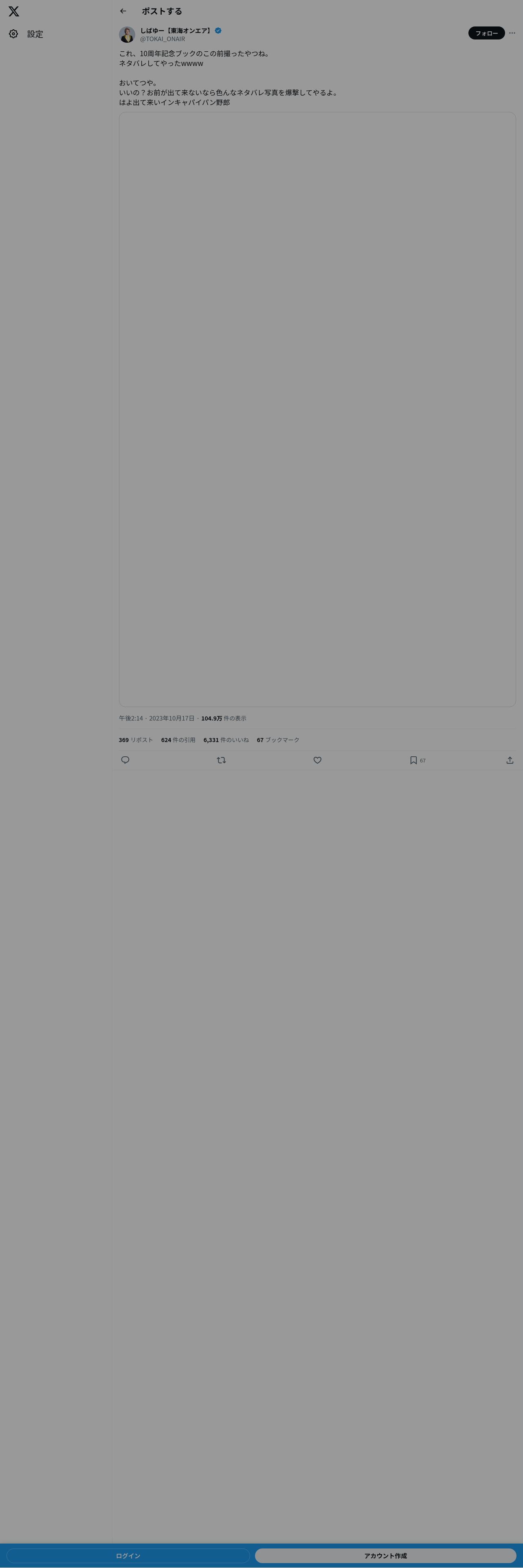 https://twitter.com:443/TOKAI_ONAIR/status/1714283865882452106