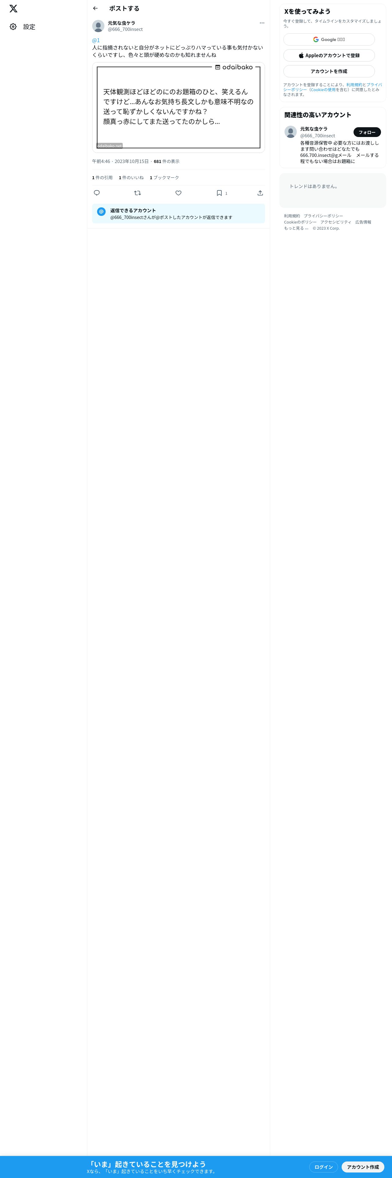 https://twitter.com:443/666_700insect/status/1713416017635066094