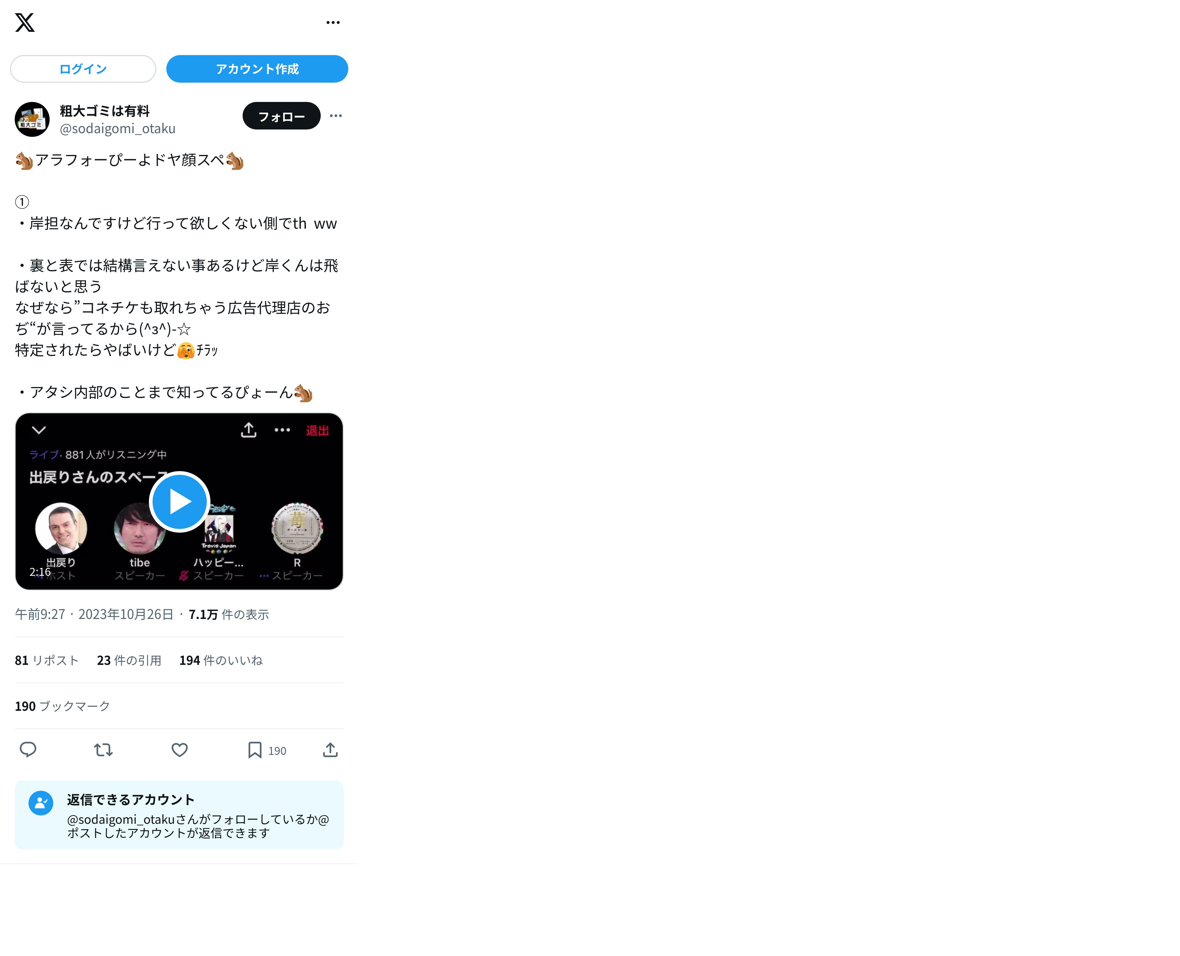 https://twitter.com:443/sodaigomi_otaku/status/1717472909550367067?t=t2ZCvnqoRXnwhrvGLJxPRw&s=19