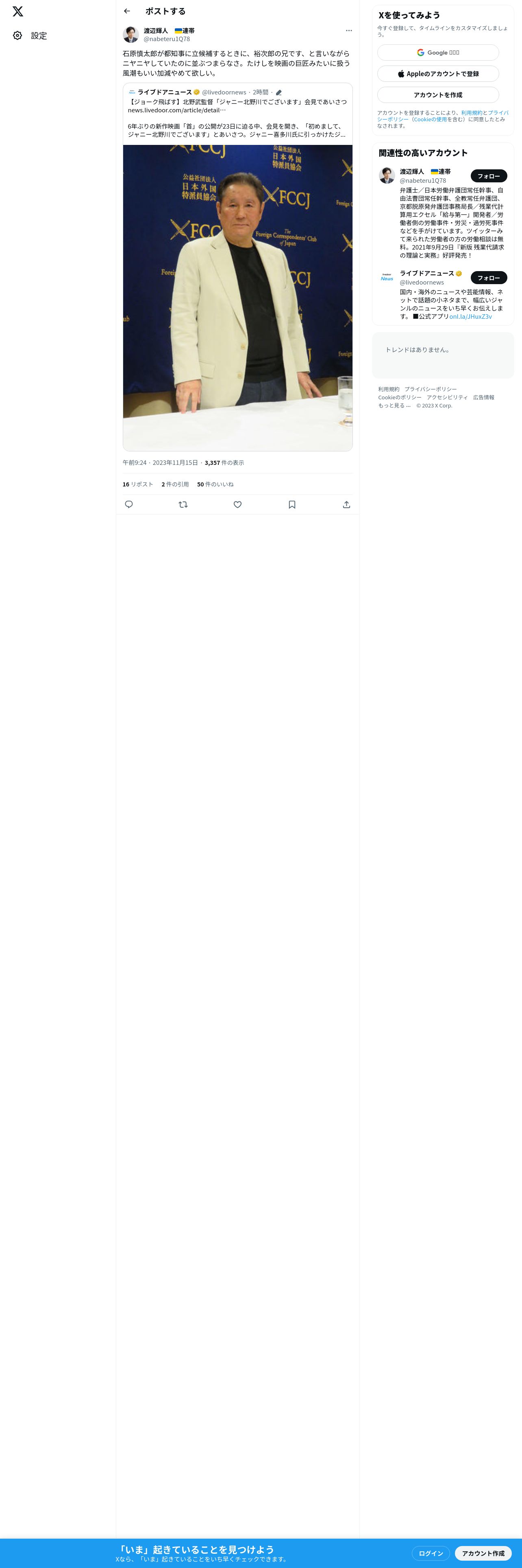 取得元URL: https://twitter.com:443/nabeteru1Q78/status/1724719988274319839