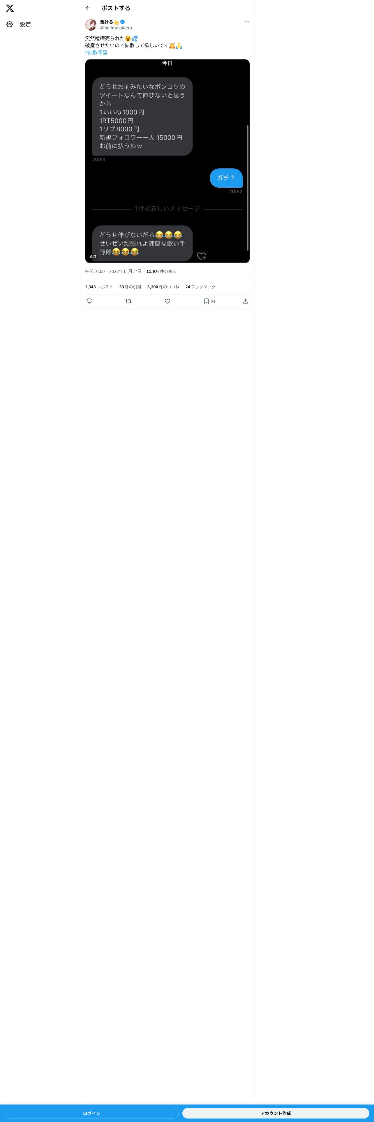 取得元URL: https://twitter.com:443/hajimekakeru/status/1729077837335085352