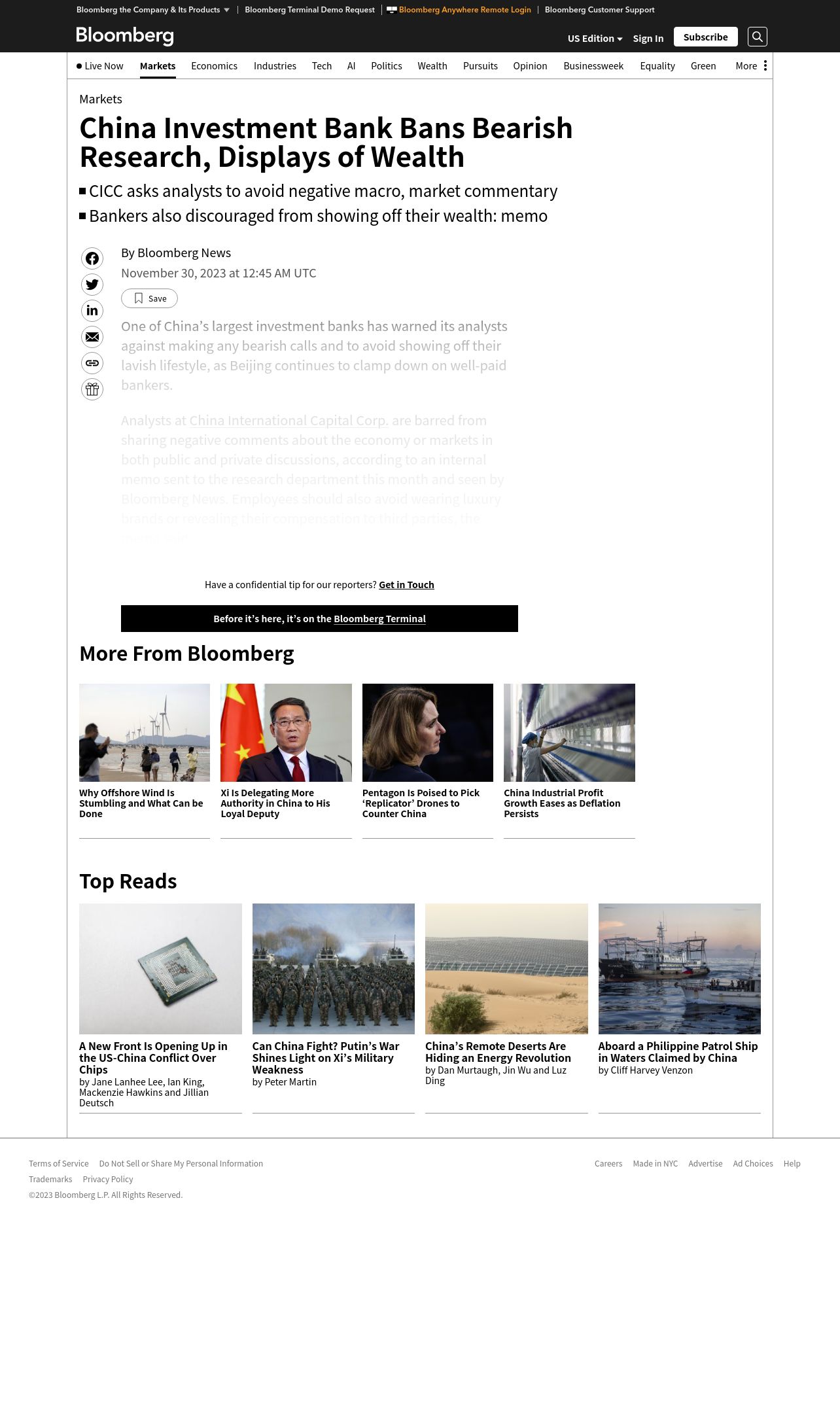 https://www.bloomberg.com:443/news/articles/2023-11-30/china-investment-bank-bans-bearish-research-displays-of-wealth