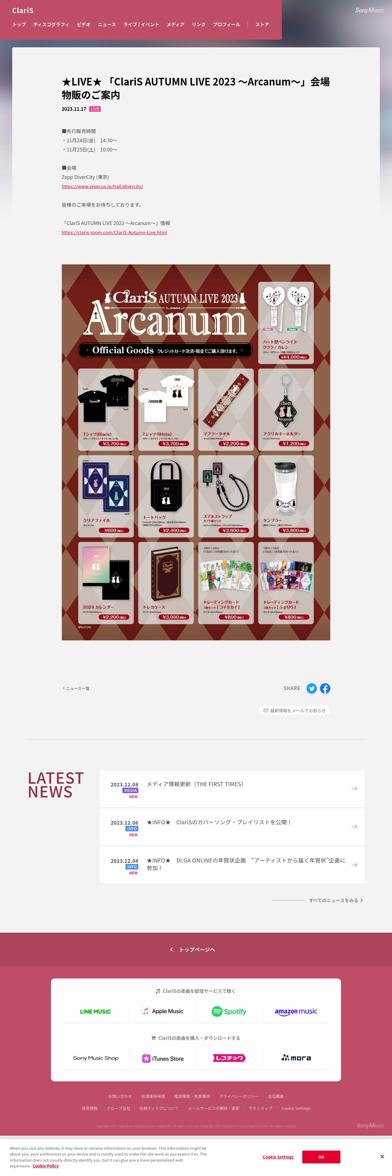 https://www.sonymusic.co.jp:443/artist/claris/info/558017