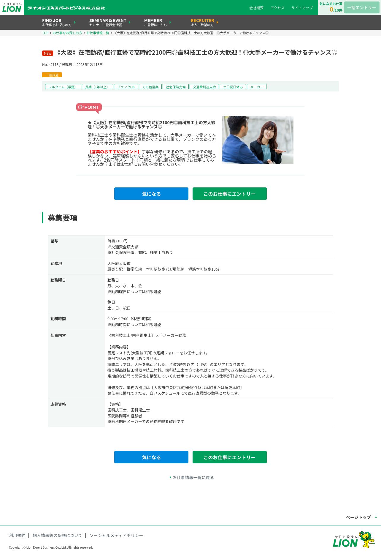 取得元URL: https://lion-cordial-s.co.jp:443/job/k2713