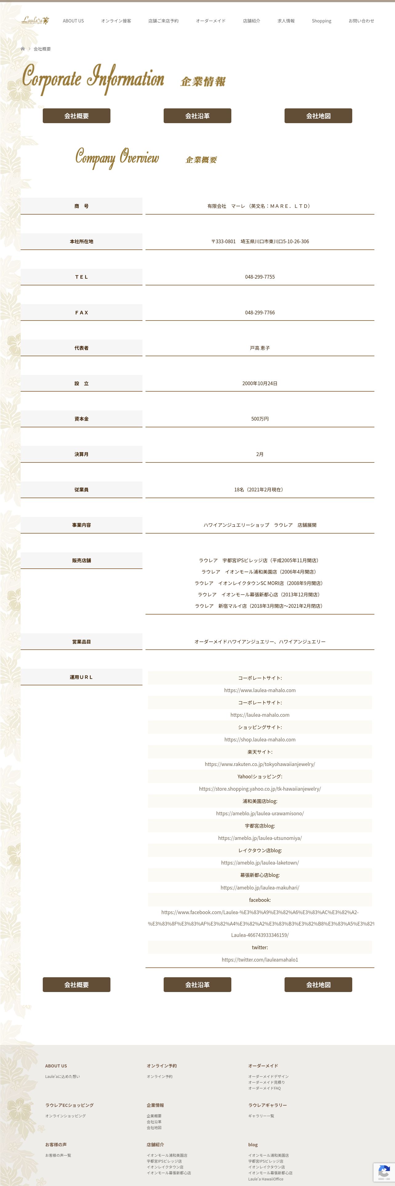 https://laulea-mahalo.com:443/%e4%bc%9a%e7%a4%be%e6%a6%82%e8%a6%81/
