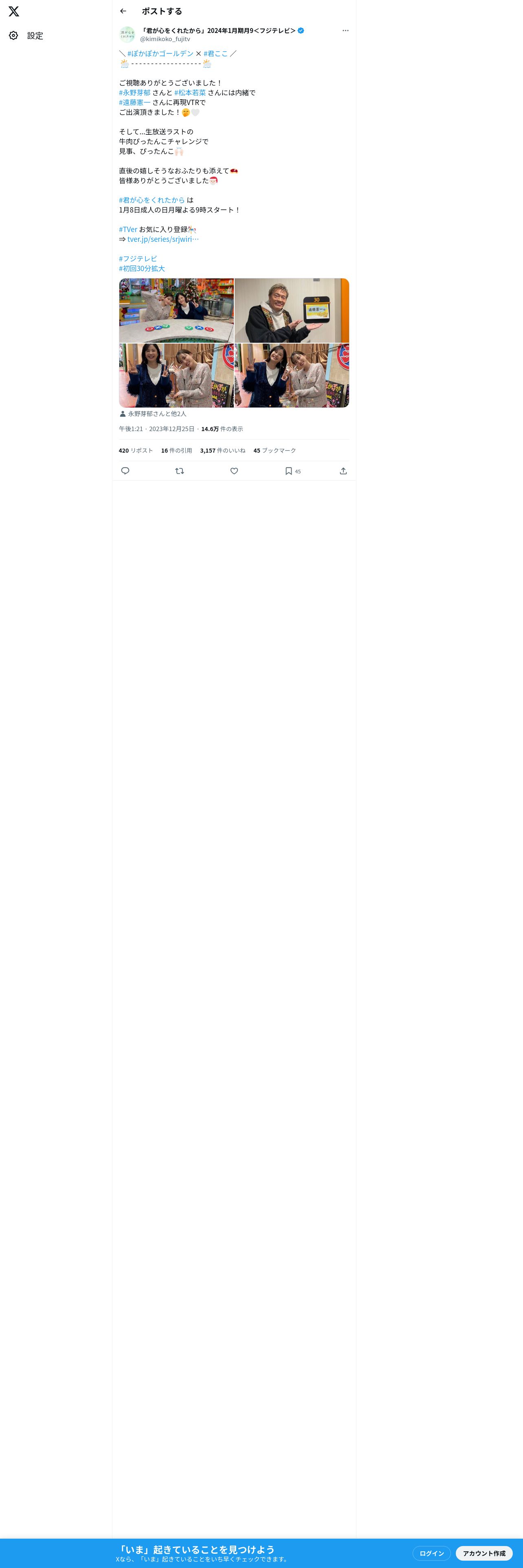 取得元URL: https://twitter.com:443/kimikoko_fujitv/status/1739275056788975823