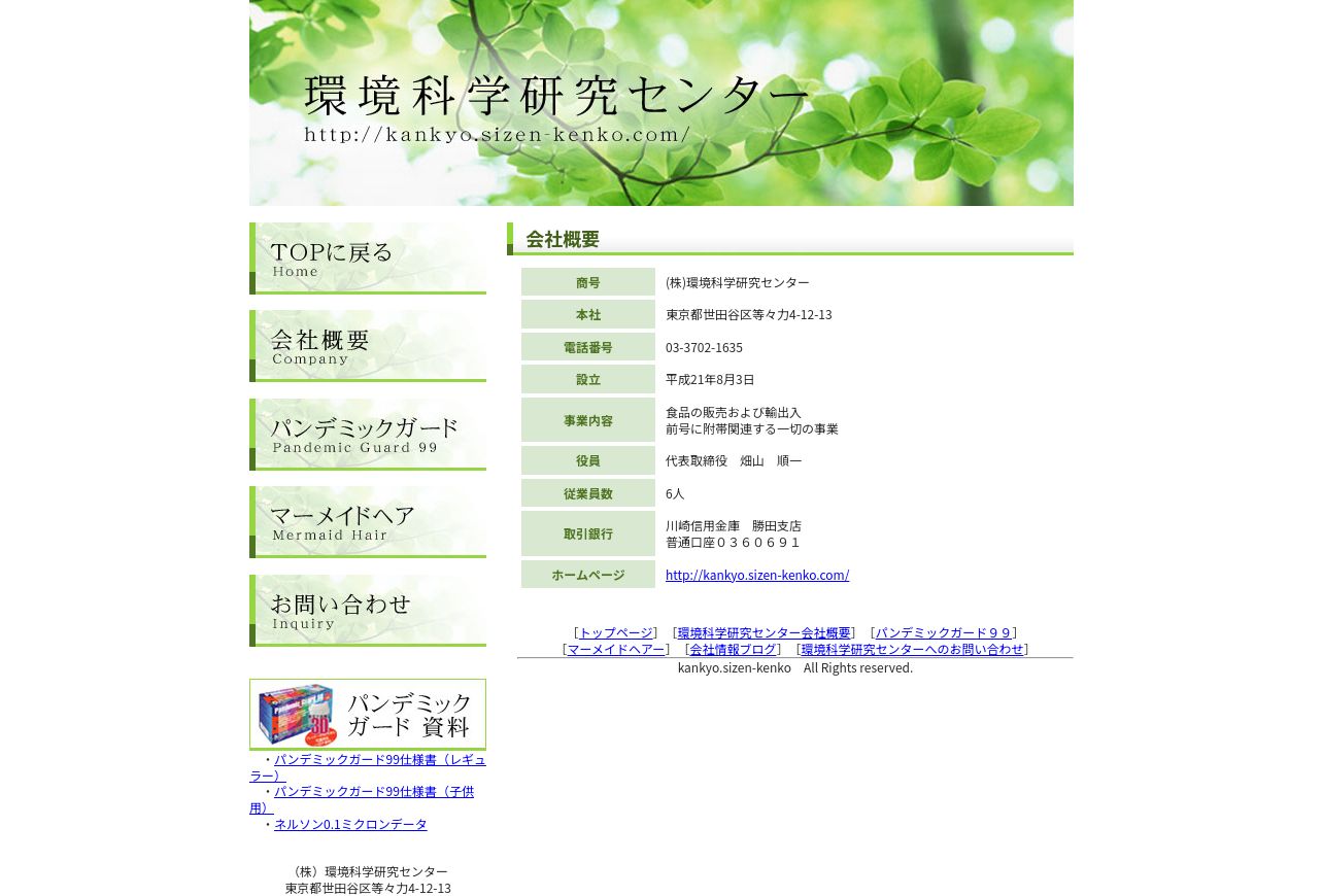 https://kankyo.sizen-kenko.com:443/company.html
