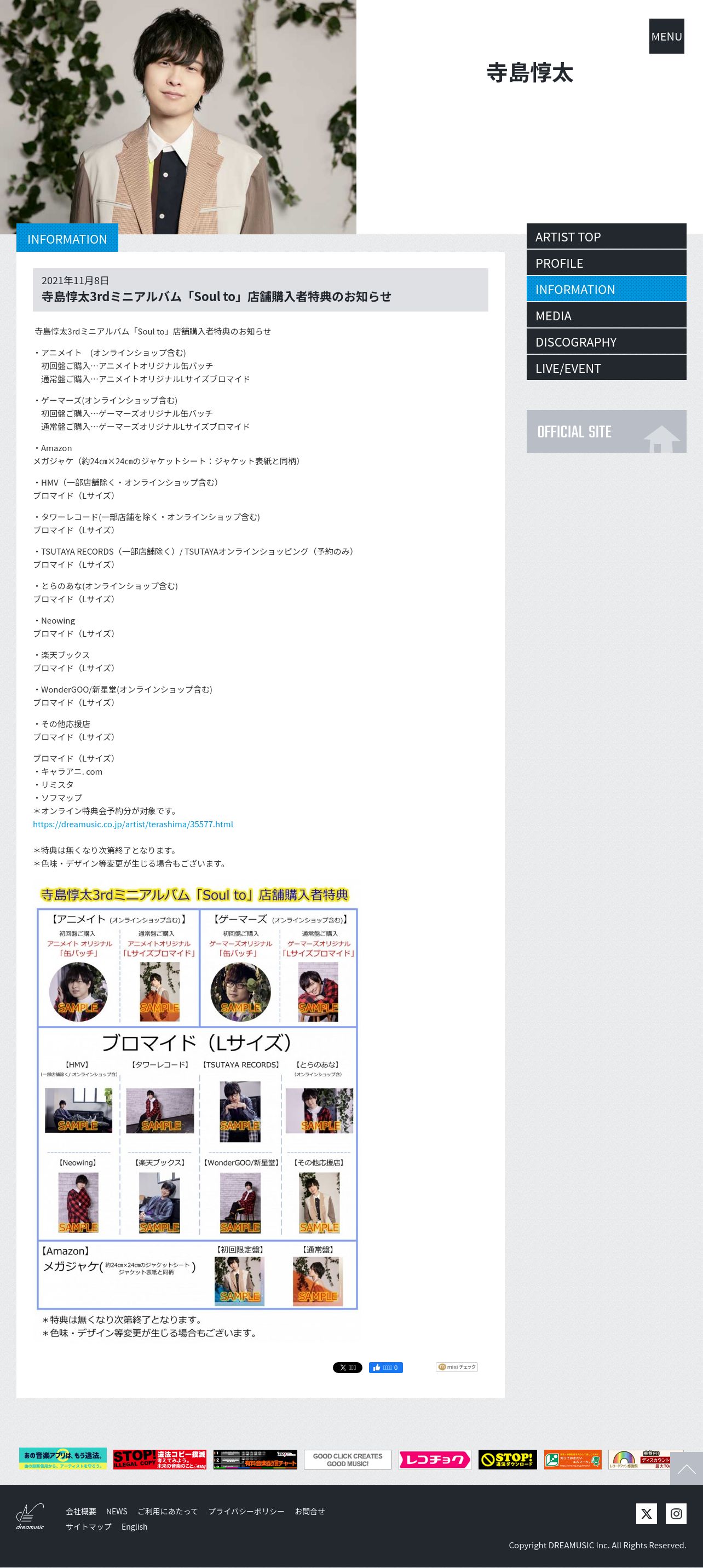 https://dreamusic.co.jp:443/artist/terashima/35577.html