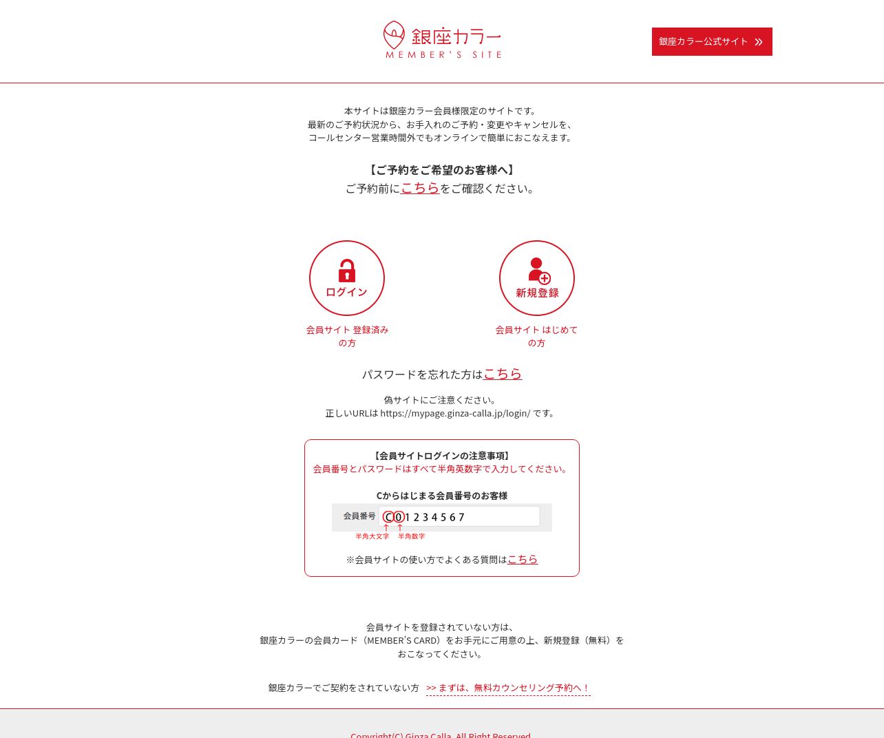 https://mypage.ginza-calla.jp:443/login/