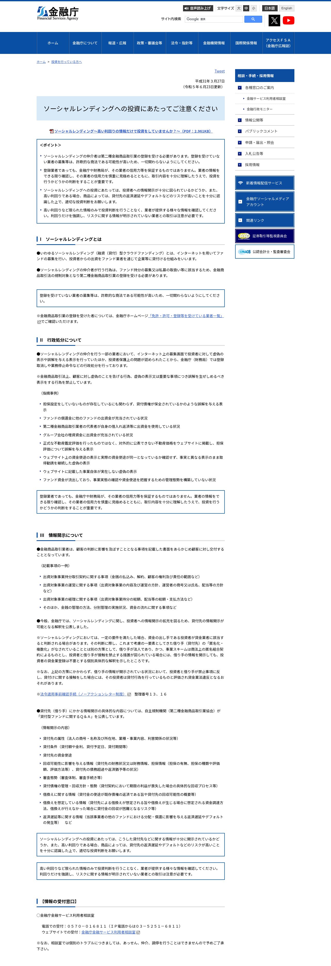 https://www.fsa.go.jp:443/ordinary/social-lending/index.html