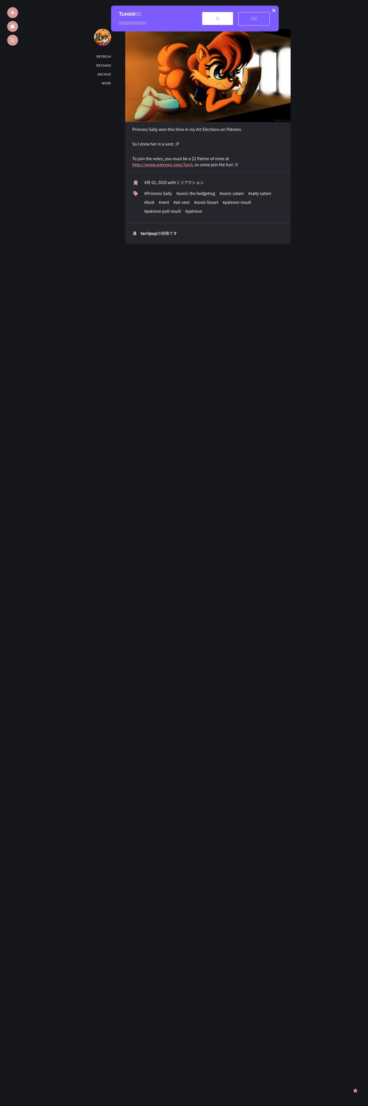 https://tarripup.tumblr.com:443/post/614264788886929408/princess-sally-won-this-time-in-my-art-elections