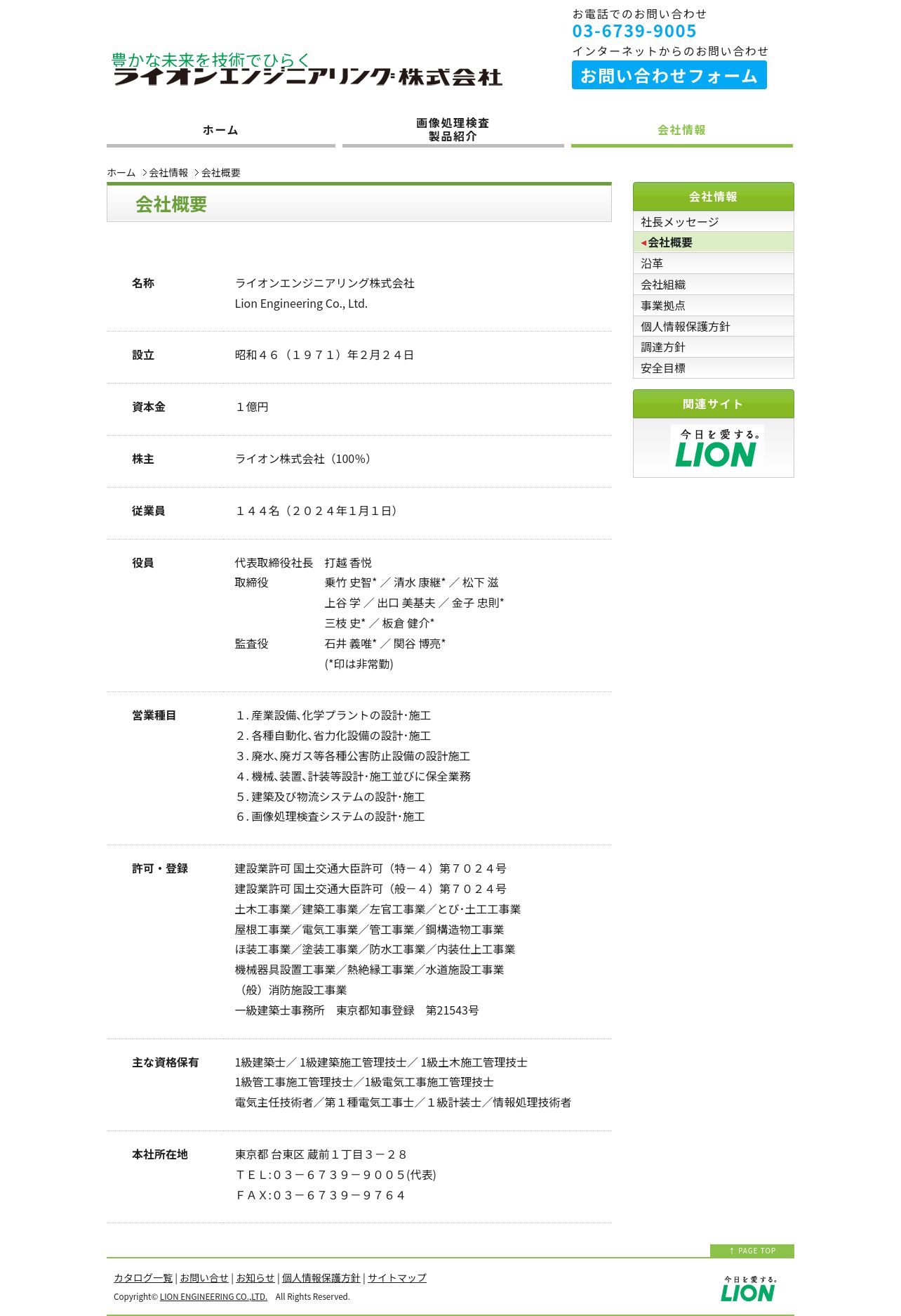 https://www.lion-eng.co.jp:443/company/outline.htm