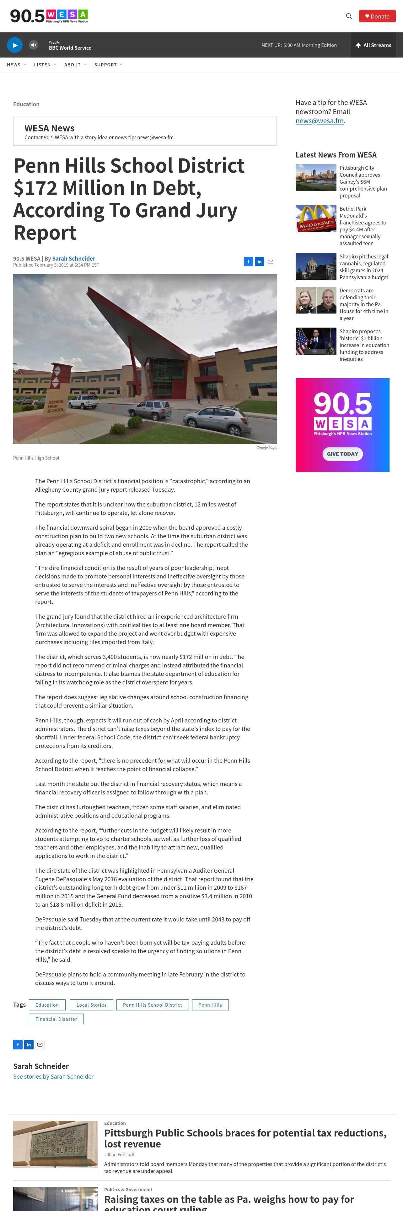 https://www.wesa.fm:443/education/2019-02-05/penn-hills-school-district-172-million-in-debt-according-to-grand-jury-report