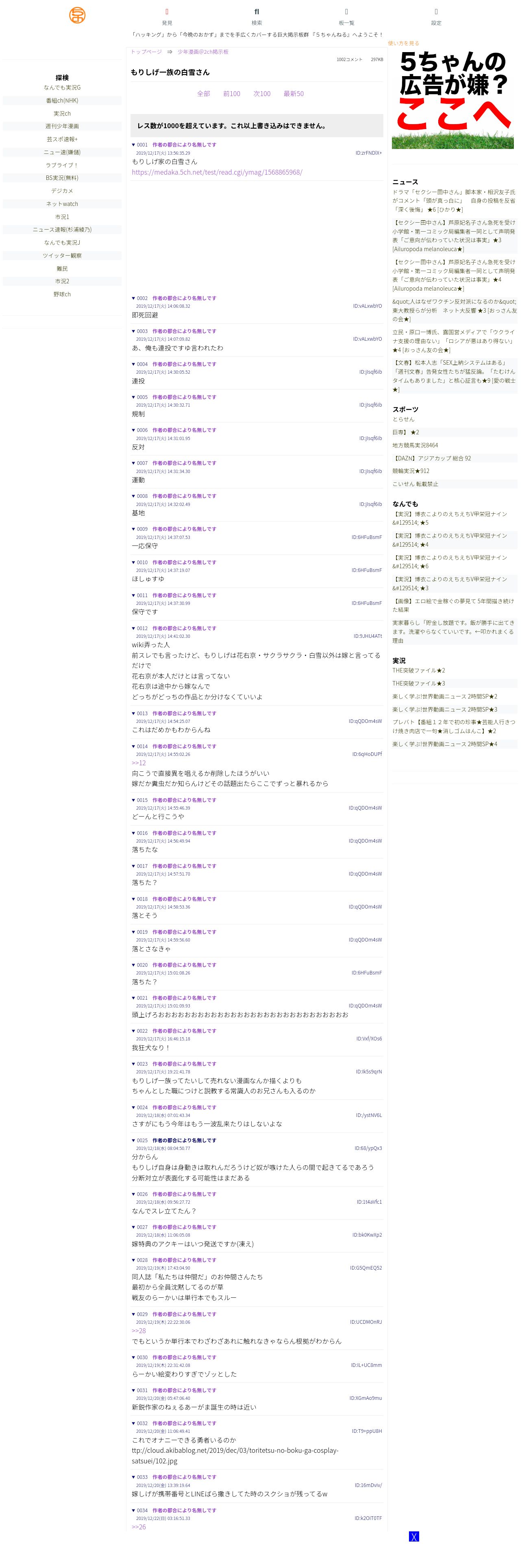https://medaka.5ch.net:443/test/read.cgi/ymag/1576558595