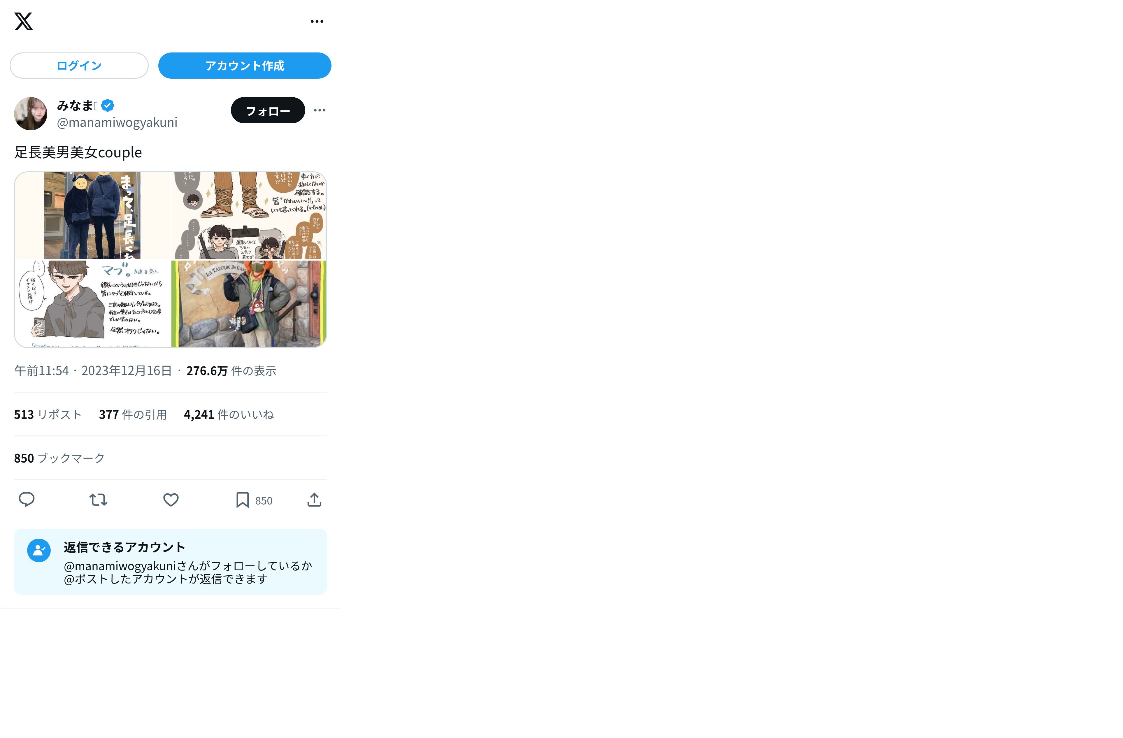 取得元URL: https://twitter.com:443/manamiwogyakuni/status/1735991778120286420?t=oZSJ0rnF3Vdid589FPKw2Q&s=19