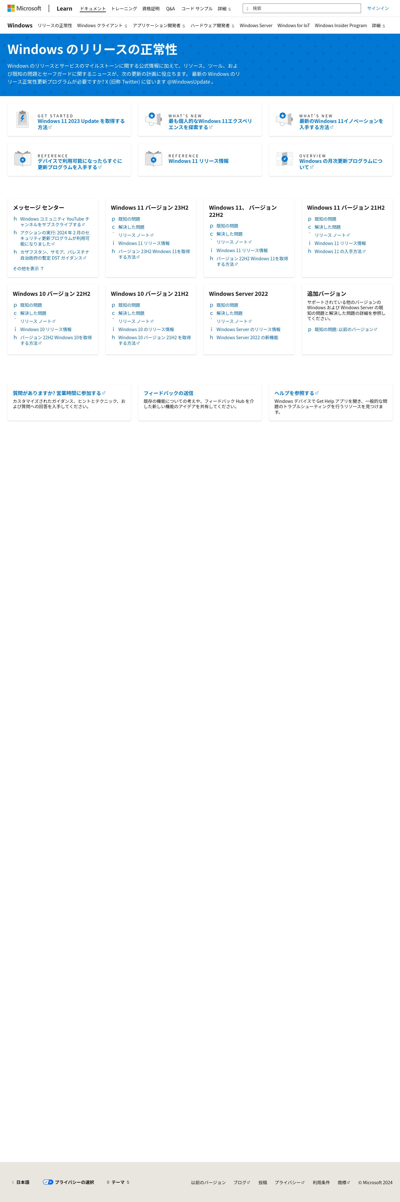 https://learn.microsoft.com:443/ja-jp/windows/release-health/