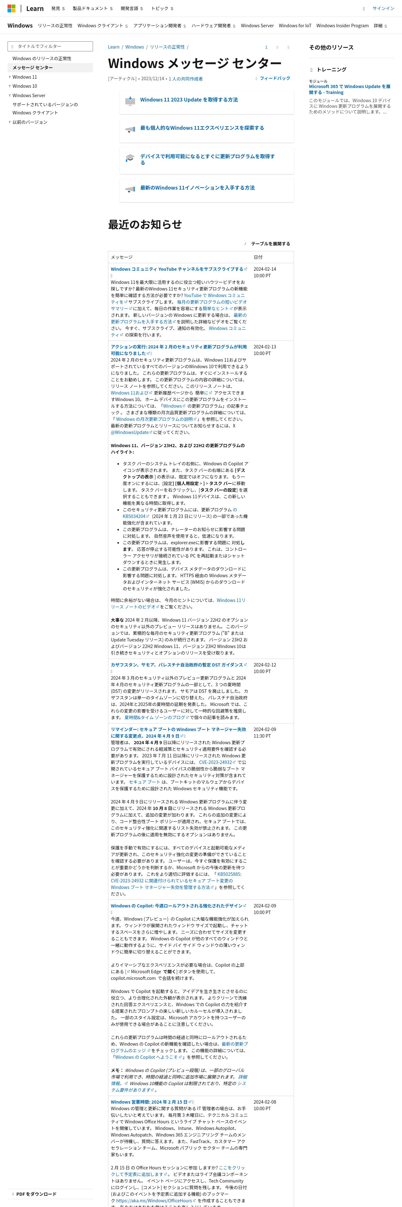 https://learn.microsoft.com:443/ja-jp/windows/release-health/windows-message-center
