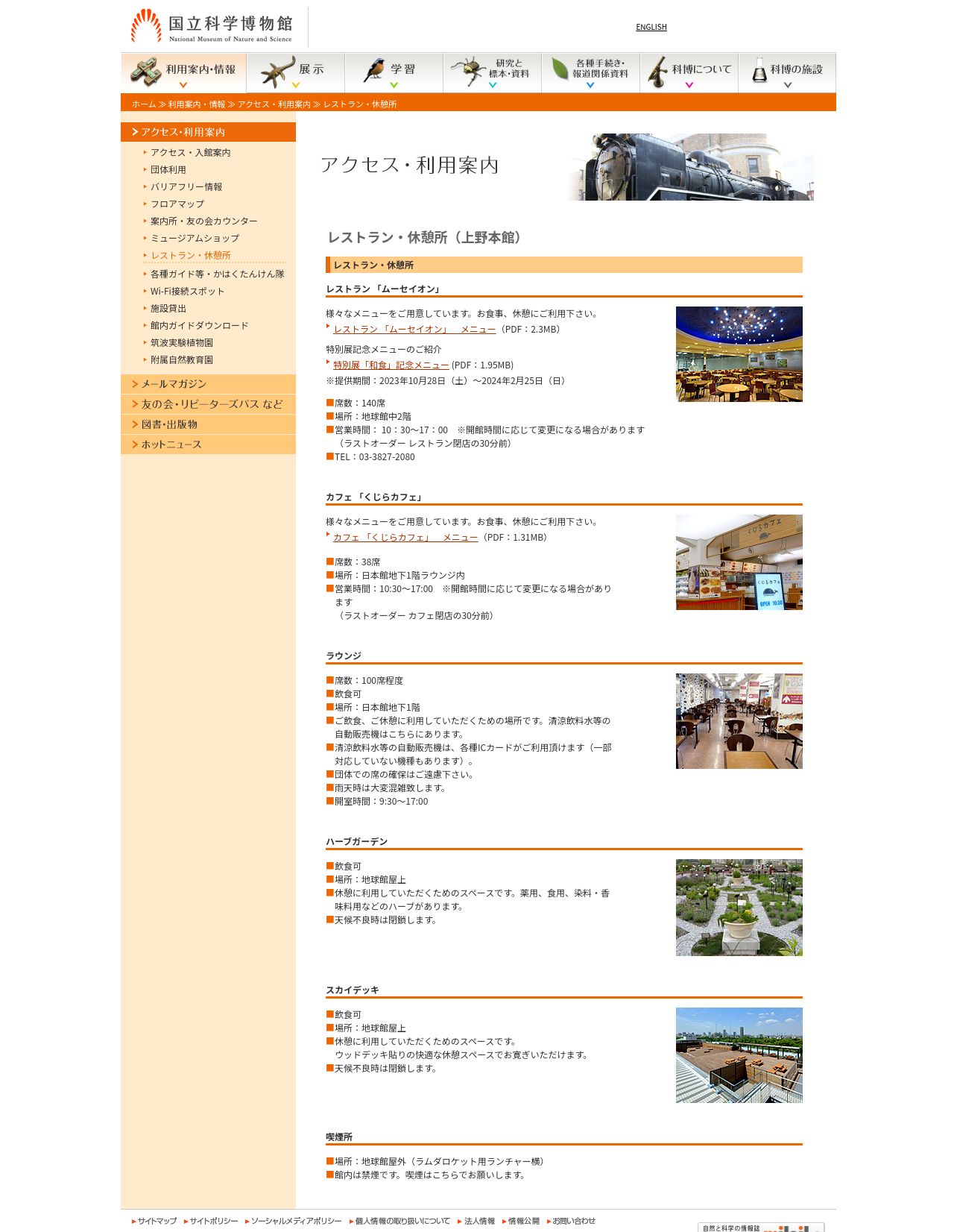 取得元URL: https://www.kahaku.go.jp:443/userguide/access/restaurant/index.html