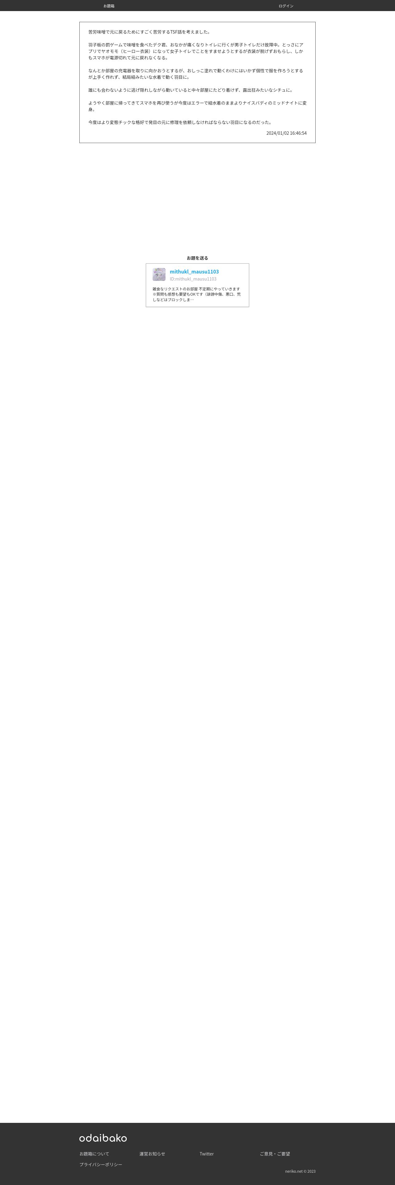 https://odaibako.net:443/detail/request/964d5add-9bd9-419b-852f-4c3fc3066b1a