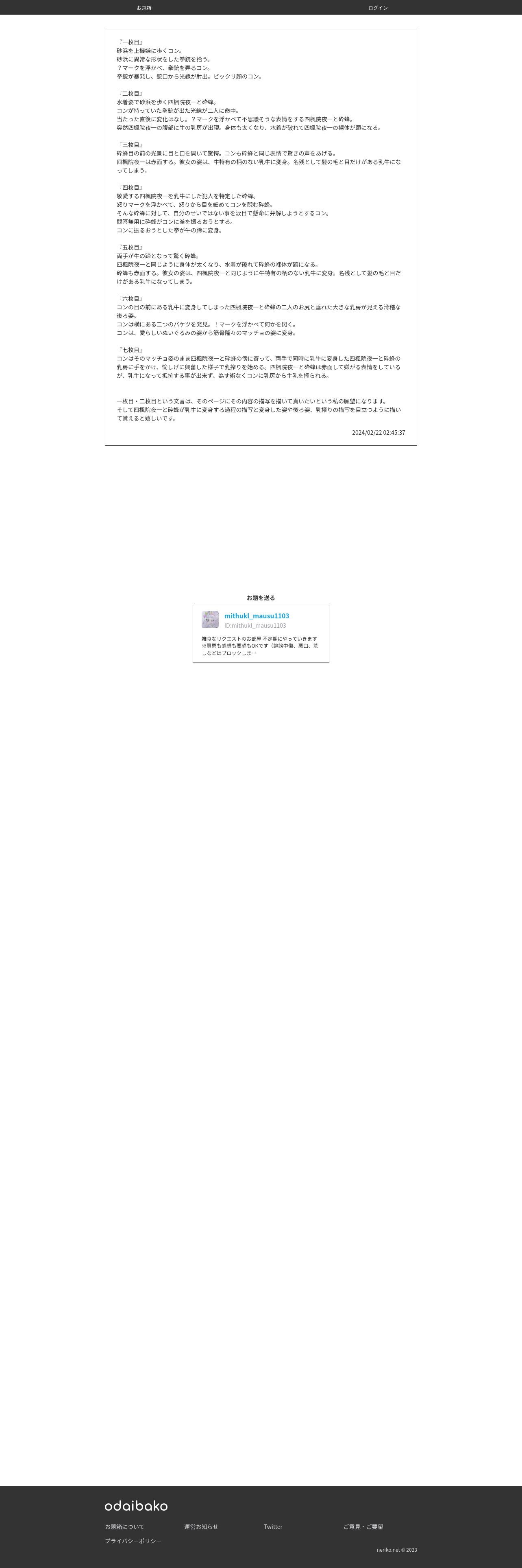 https://odaibako.net:443/detail/request/abc2c018-ab95-49b5-a0b8-3f78585db45d