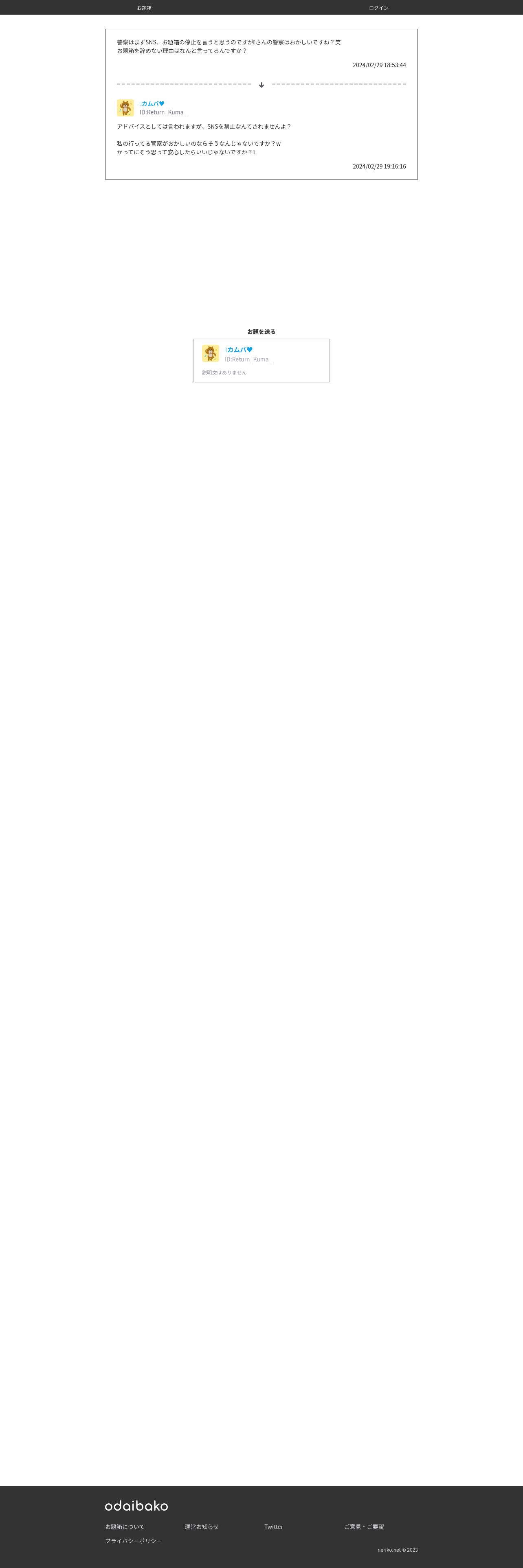 https://odaibako.net:443/posts/018df45d6118588e1cc0ba870c3b69be