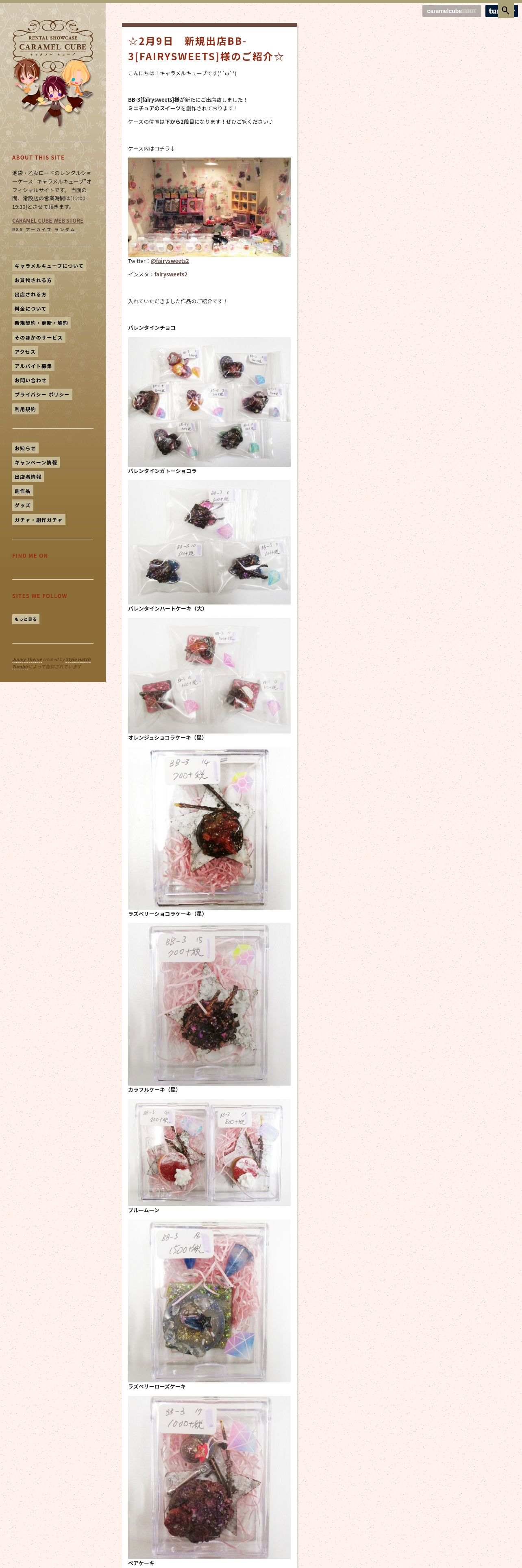 https://www.caramelcube.com:443/post/190729133999/2%E6%9C%889%E6%97%A5-%E6%96%B0%E8%A6%8F%E5%87%BA%E5%BA%97bb-3fairysweets%E6%A7%98%E3%81%AE%E3%81%94%E7%B4%B9%E4%BB%8B