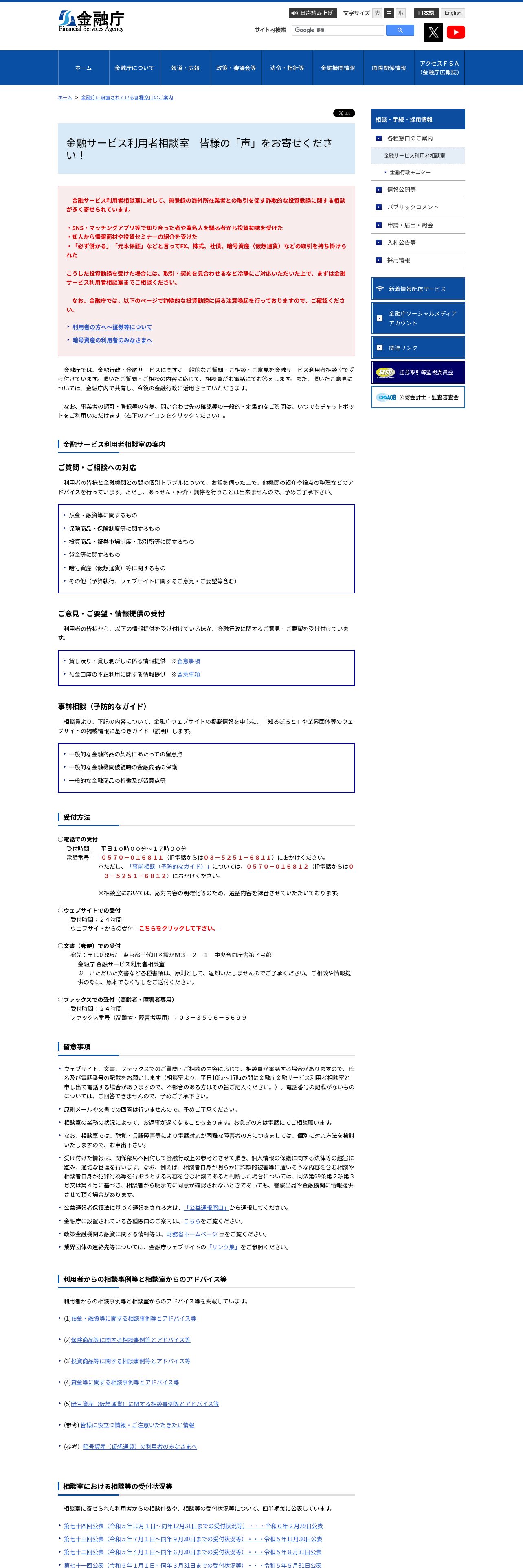 https://www.fsa.go.jp:443/receipt/soudansitu/index.html