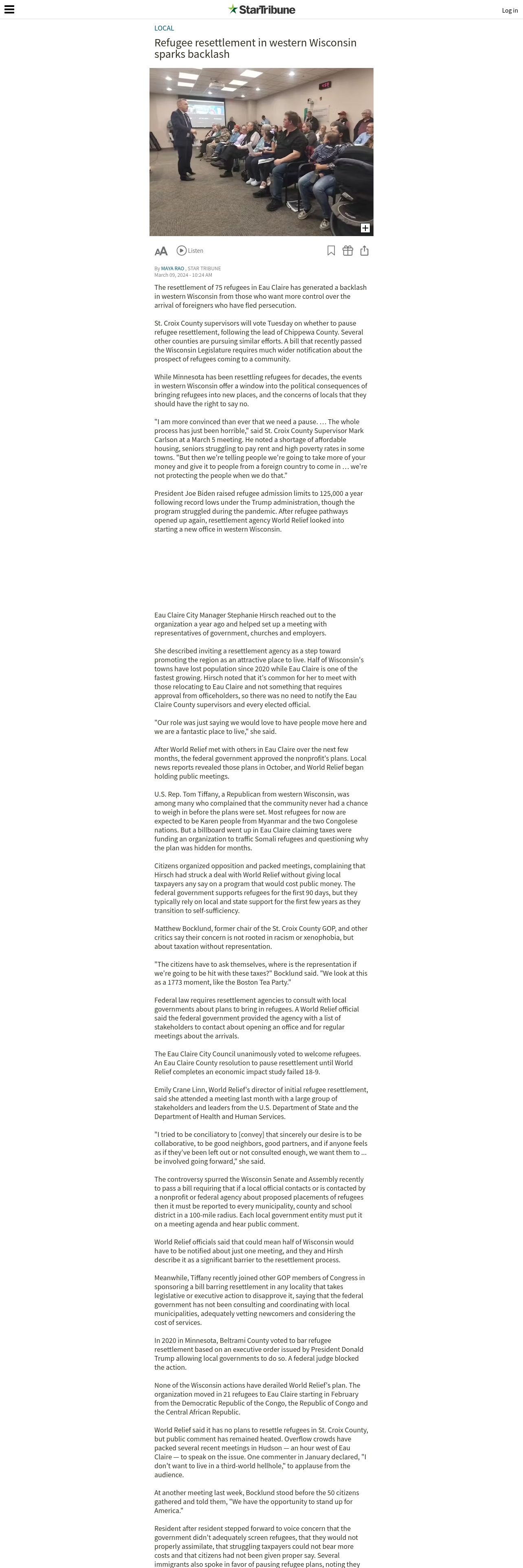 https://m.startribune.com:443/refugee-resettlement-in-western-wisconsin-sparks-backlash/600349728/