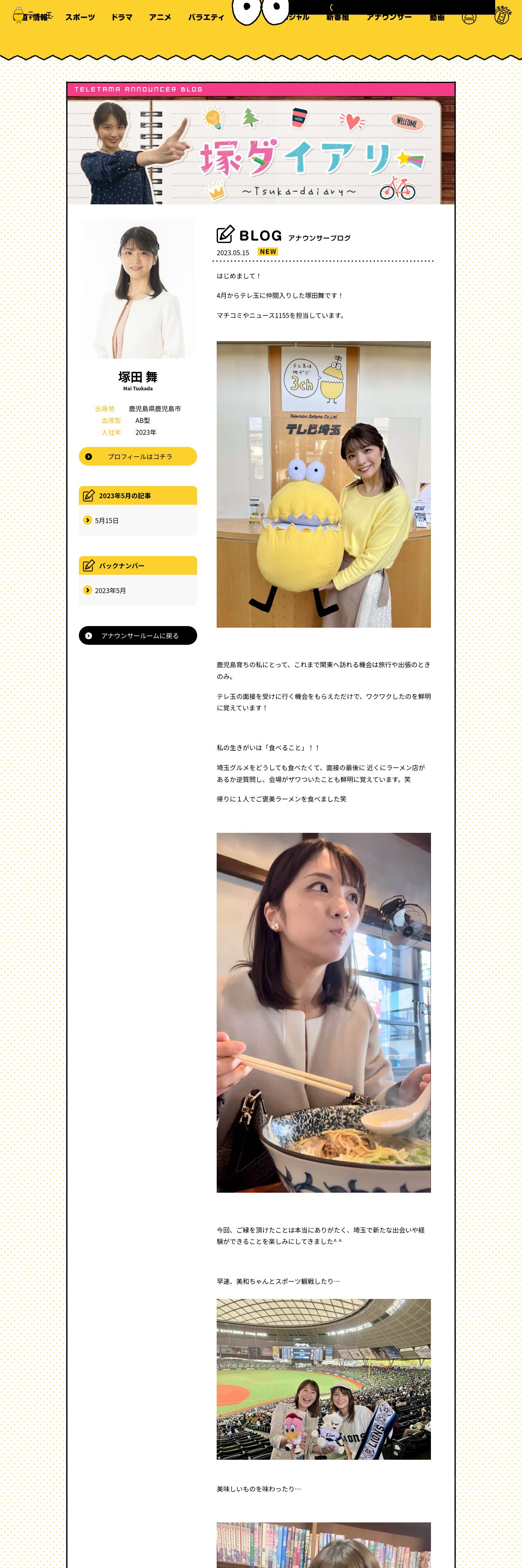 https://www.teletama.jp:443/announcer/mai_tsukada/blog/
