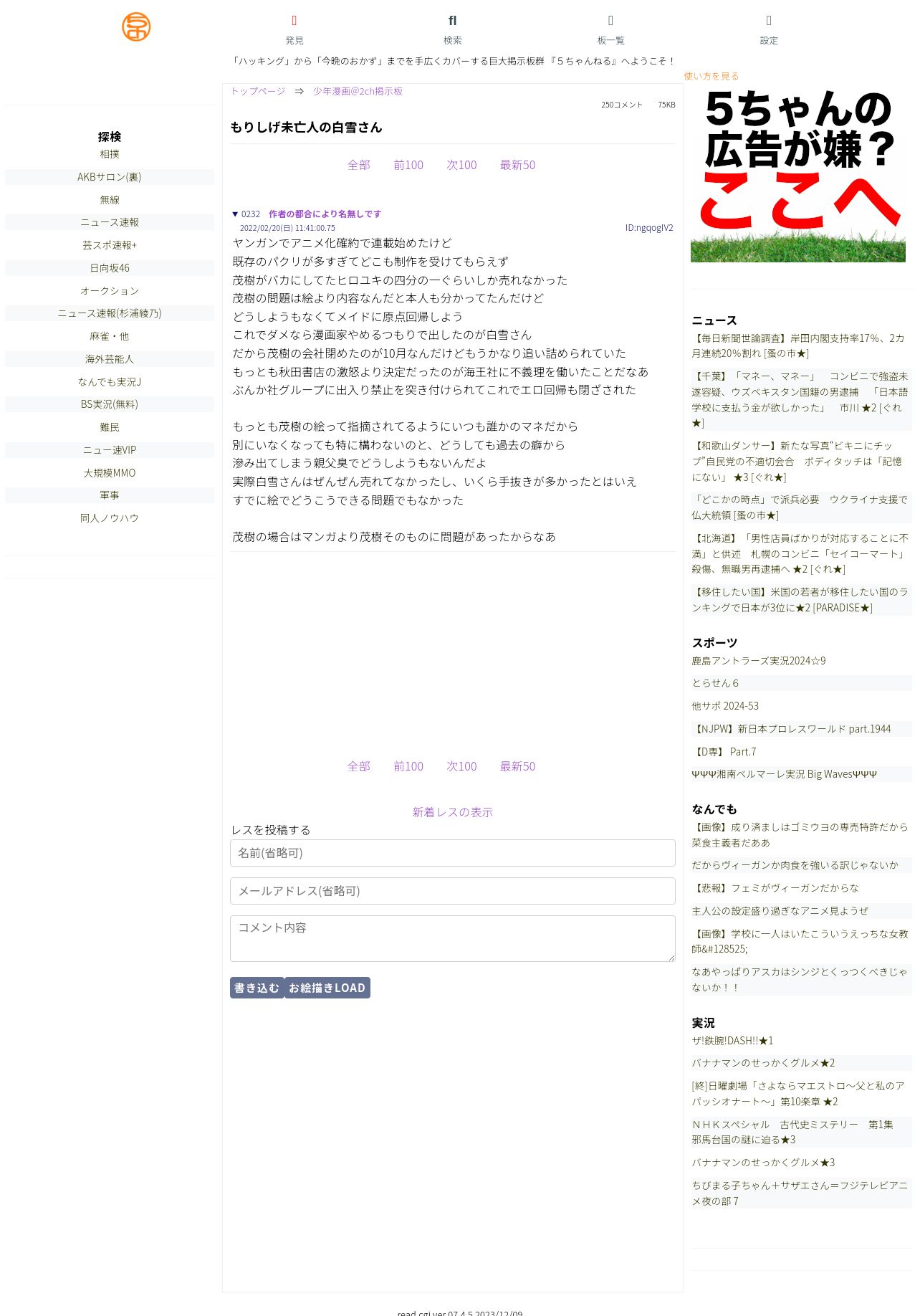https://medaka.5ch.net:443/test/read.cgi/ymag/1613029099/232